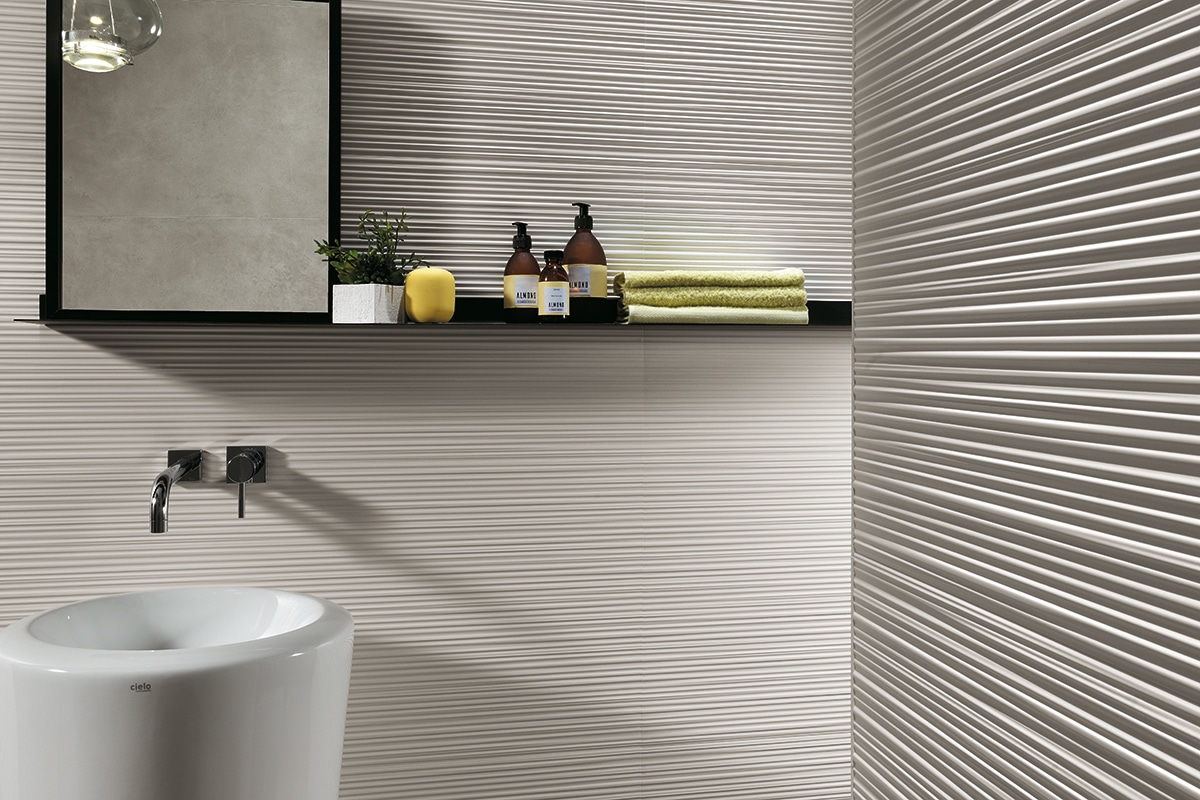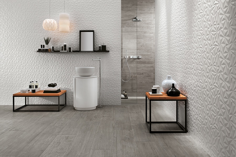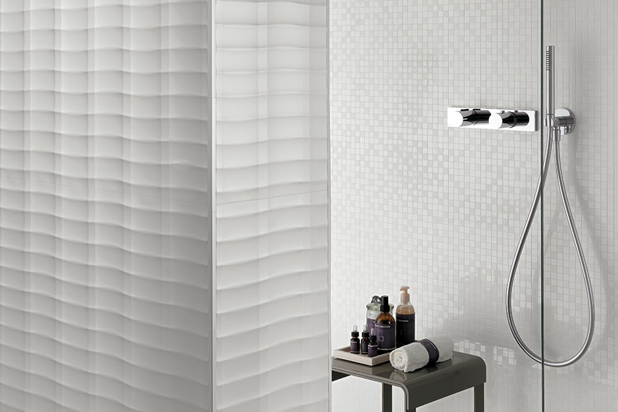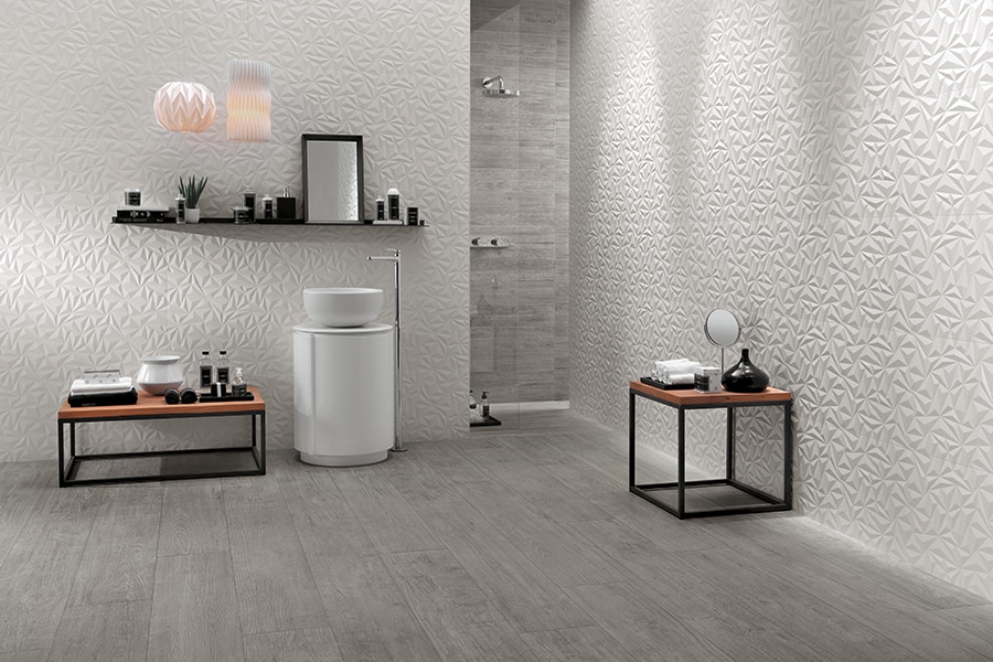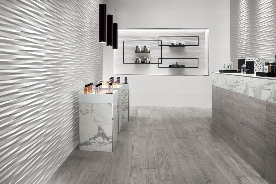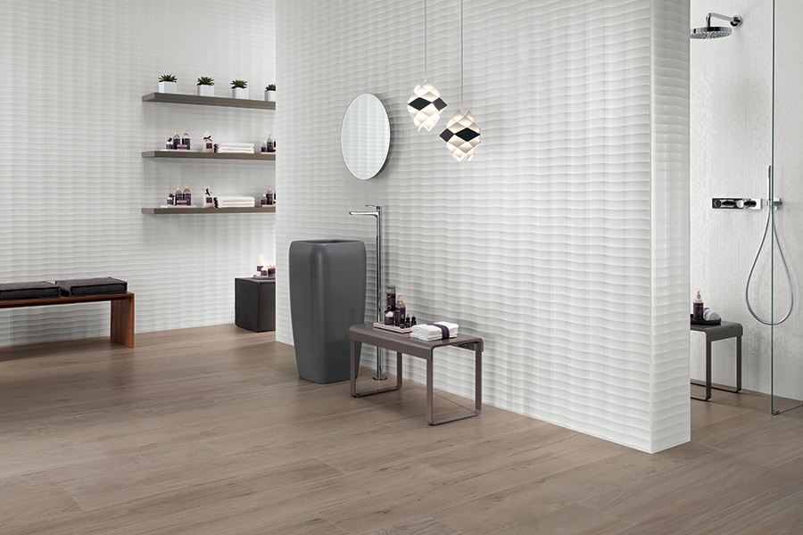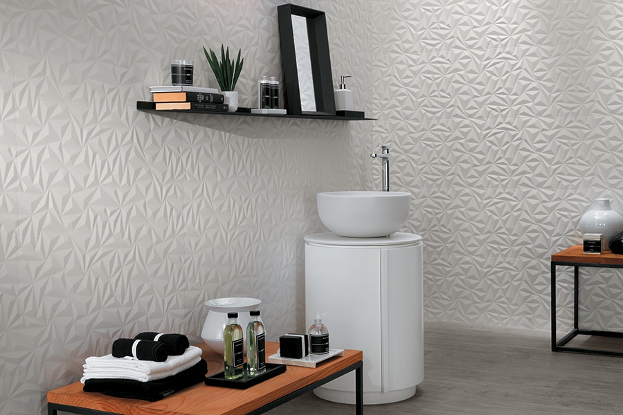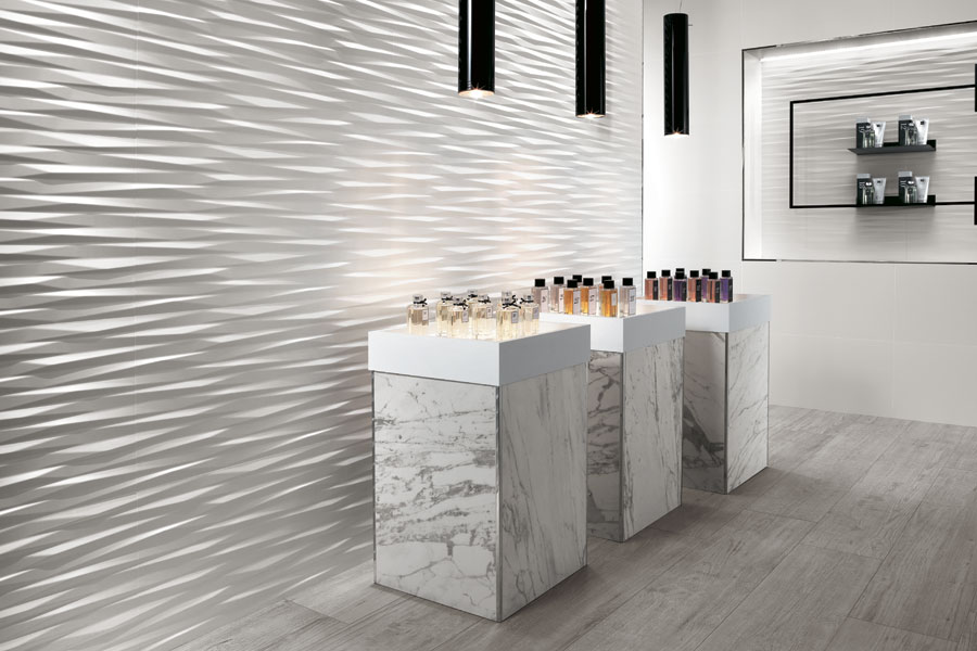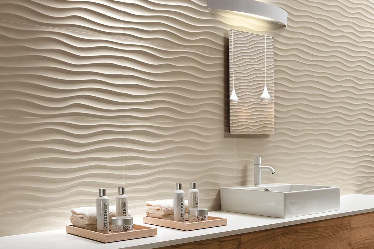 La ligne 3D riche de ses surfaces en céramique reliefs créent des murs décoratifs esthétiquement captivants et dynamiques. Les innombrables reliefs de la surface, équilibre harmonieux de lignes droites et de profils anguleux, offre un effet 3D de revêtement se transformant selon la direction et l’influence de la lumière.