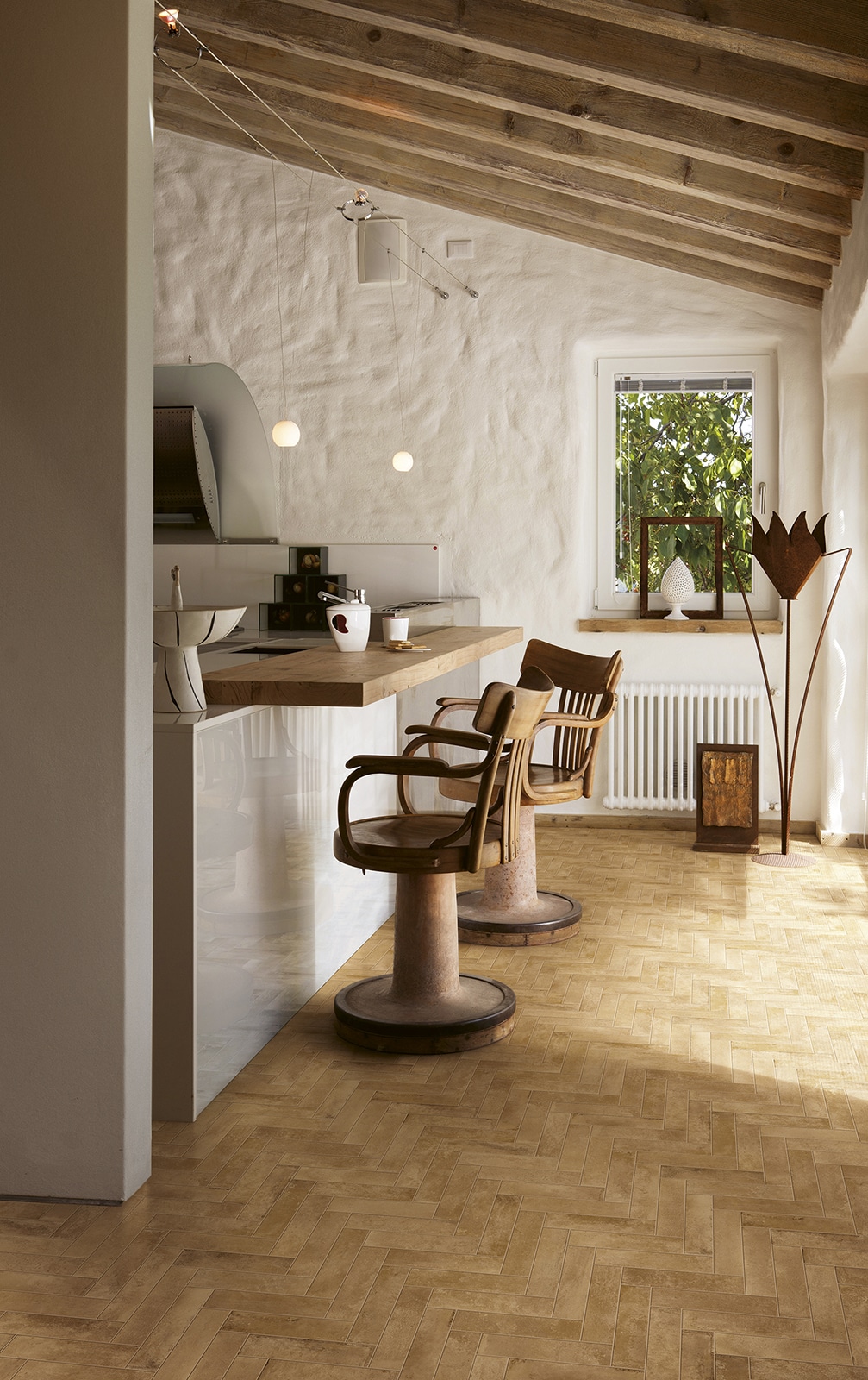 La variété des formats et l’opulence des dégradés permettent de composer des alliances fascinantes entre le charme ancien des matériaux et la sensibilité formelle du design contemporain.