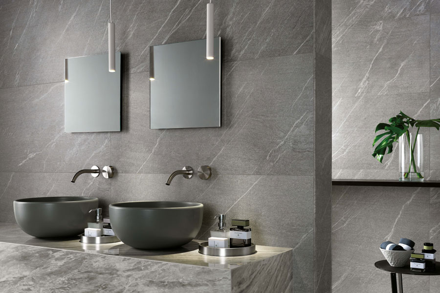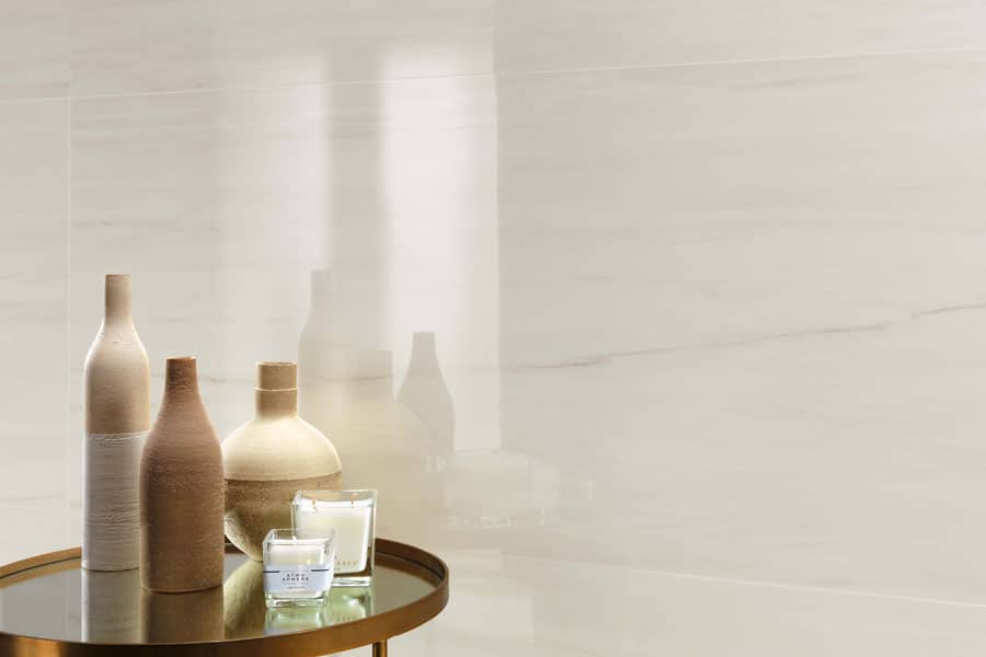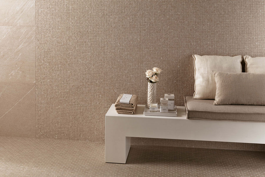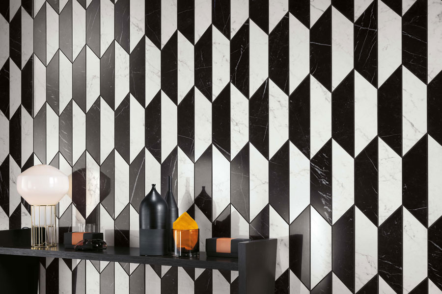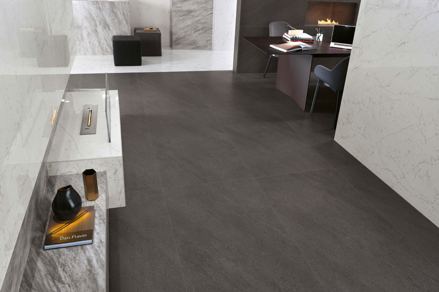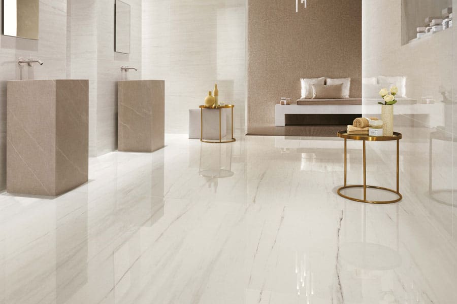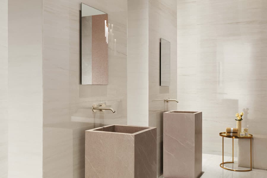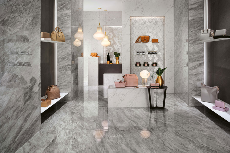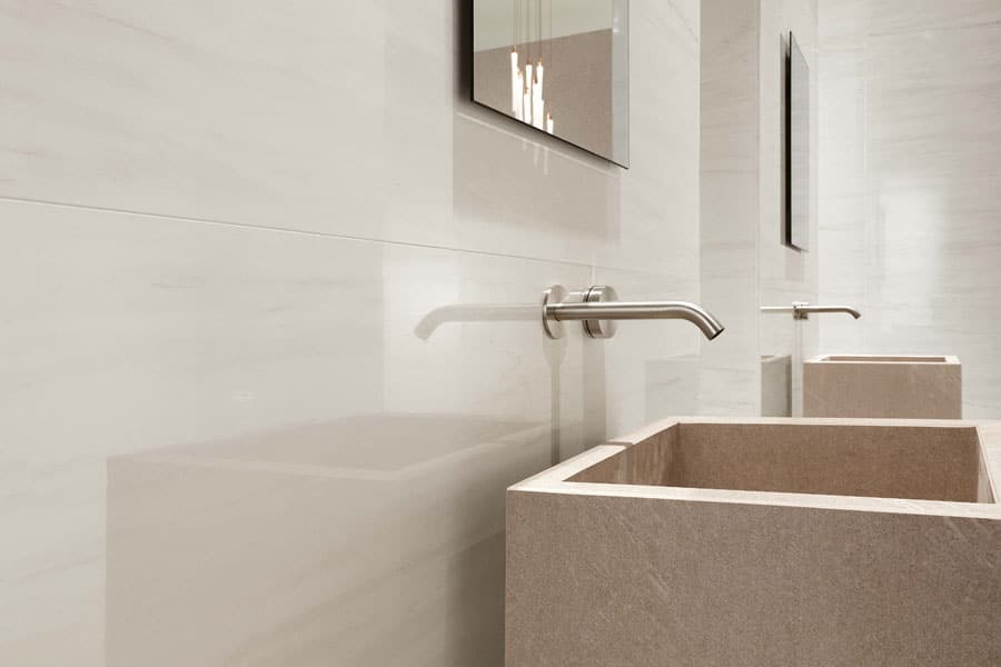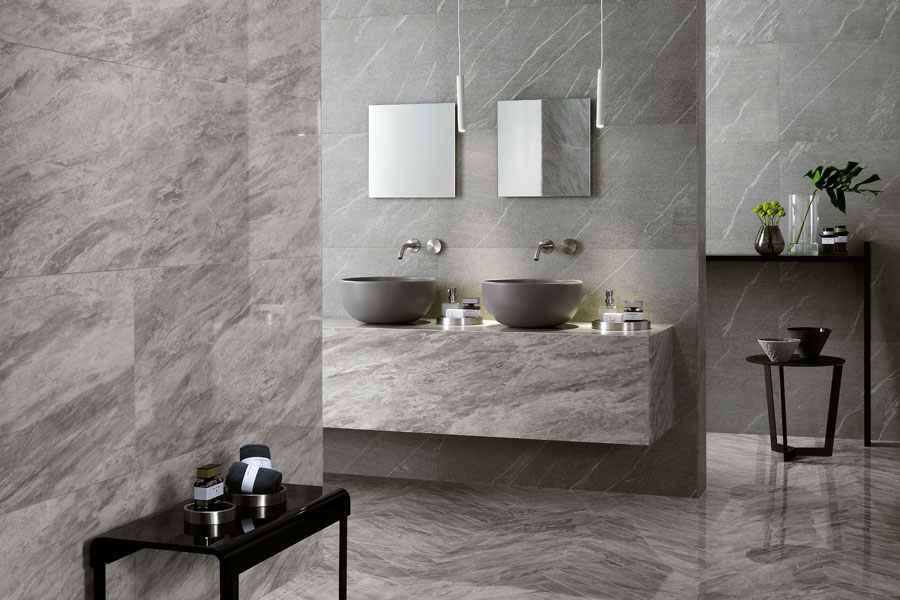 MARBLE STONE : Un projet de décoration marbre pour vos sols et murs qui combine des surfaces s’inspirant de pierres et de marbres, pour créer des lieux au design de grande elegance et de grand caractère. Le grès cérame effet marbre est interprété très légèrement et de manière contemporaine grâce à l’inspiration de la pierre, sobre et minimaliste.