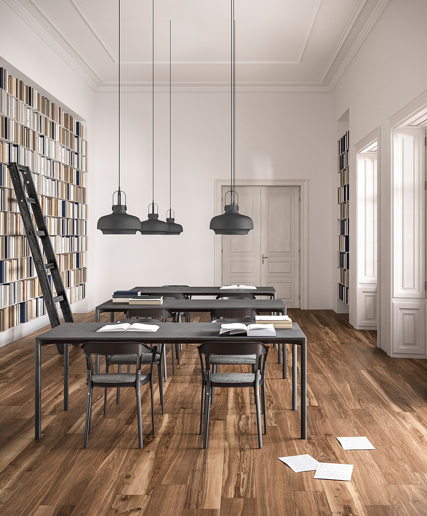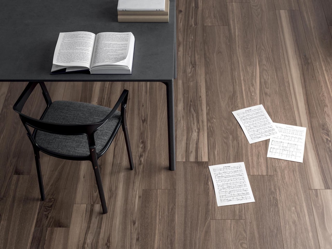 Cette collection Fiore est un savant mélange de deux essences : mélange d’essences de noyer d’Amérique et de noyer d’Italie, associées l’une à l’autre en un équilibre qui sublime leurs plus belles expressions esthétiques : celles qui s’inspirent d’un veinage longitudinal typique, régulier et élégant, plus contrasté sur le noyer d’Amérique, plus harmonieux sur le noyer d’Italie.