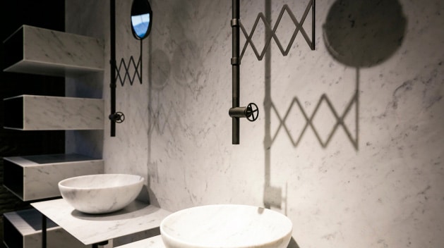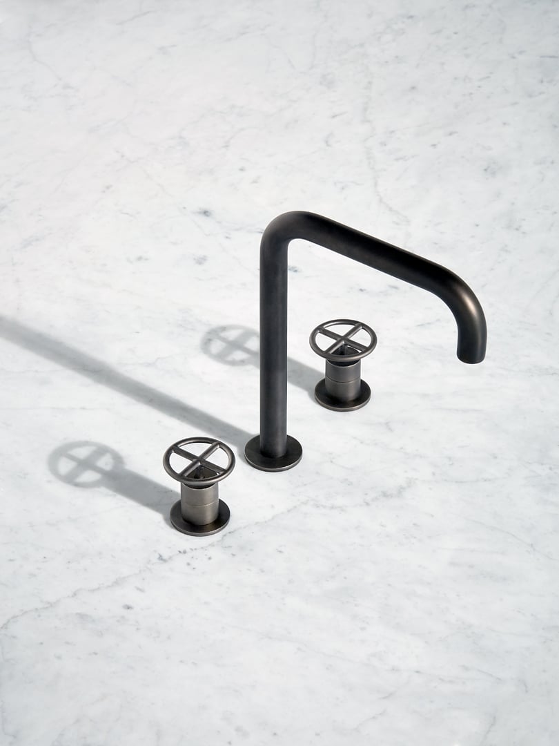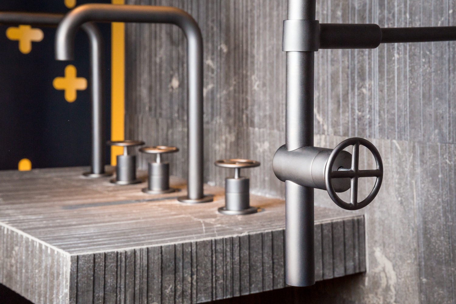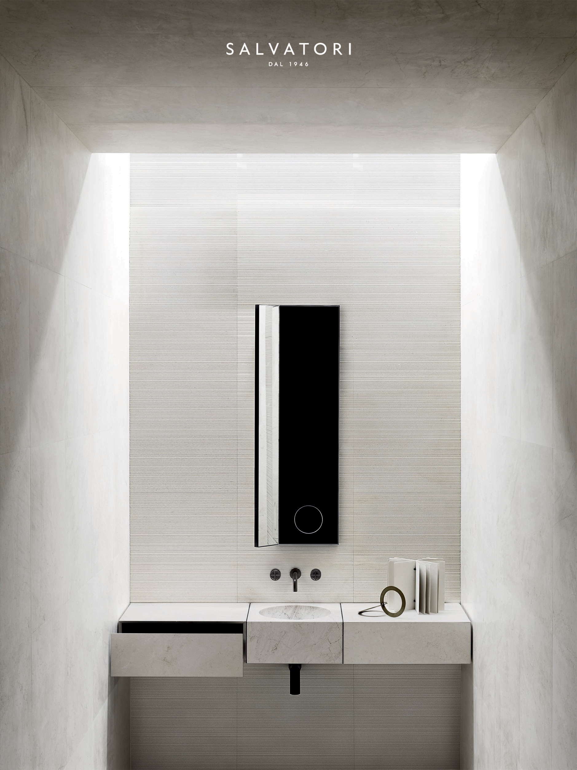 Le projet est né à la suite d’une recherche effectuée sur les formes archétypales traduites en géométrie pure et interprétées sous un jour contemporain. La richesse des matériaux, le marbre et les pierres destinés aux lavabos et la finition en Matt Gun Metal PVD enrichissent la pureté des formes. La collection FONTANE BIANCHE tire son nom d’une localité aux sables blancs en Sicile, appelée ainsi à cause des nombreuses fontaines naturelles d’eau douce qui jaillissent dans la mer.