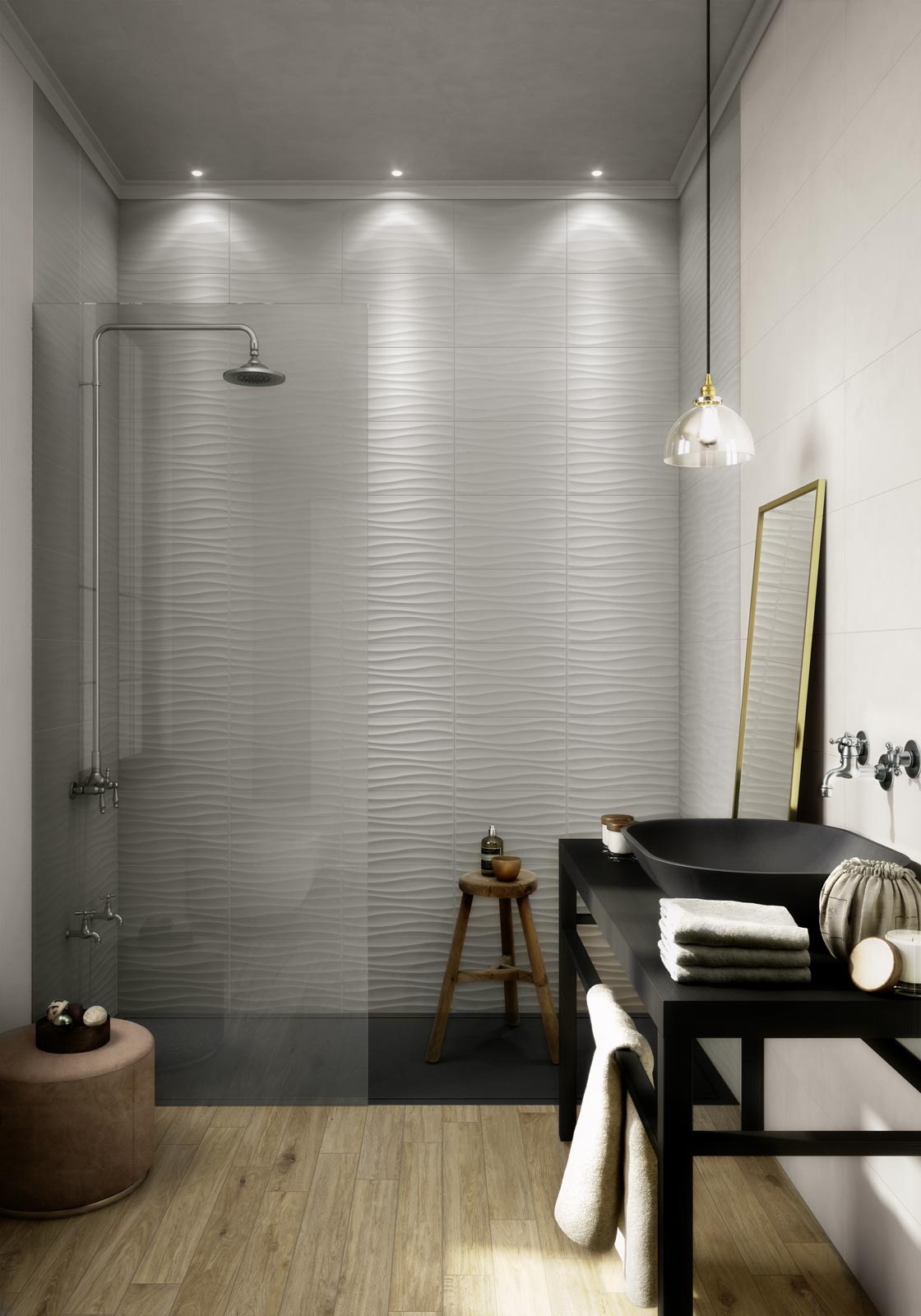 Feel est un revêtement mural à pâte blanche qui allie des décors, des reliefs ainsi que des bases unies : des nuances aux tons froids et chauds. Un mouvement ondulant, dicté par les structures en relief, vient rehausser la régularité des teintes neutres.