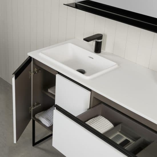 Cette série propose un style industriel alliant à la perfection utilité et esthétisme, pensé pour créer une ambiance personnalisée et fonctionnelle dans votre salle de bains.