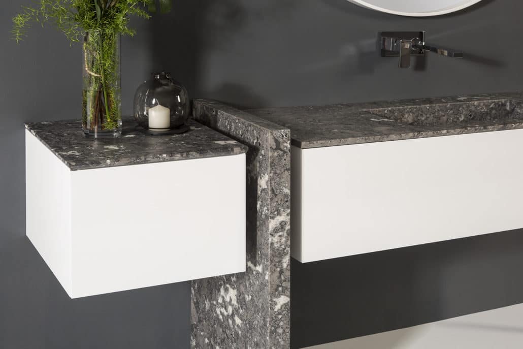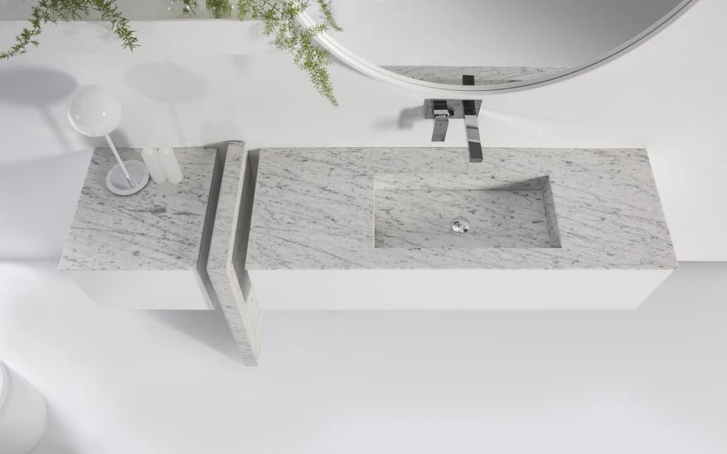 – Vasque : Marbre Carrara (blanc) ou Lobo (anthracite)