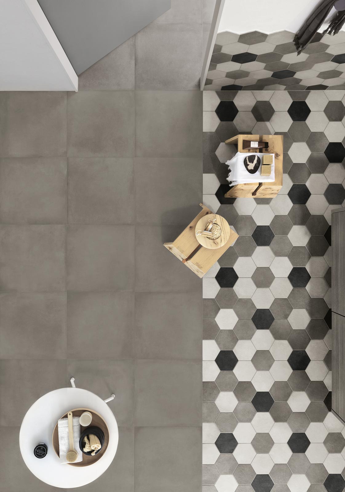 Les imitations carreaux de ciments en grès cerame au format carré ou hexagonal traduisent dans un langage contemporain la beauté des carreaux traditionnels en ciment décoré.
