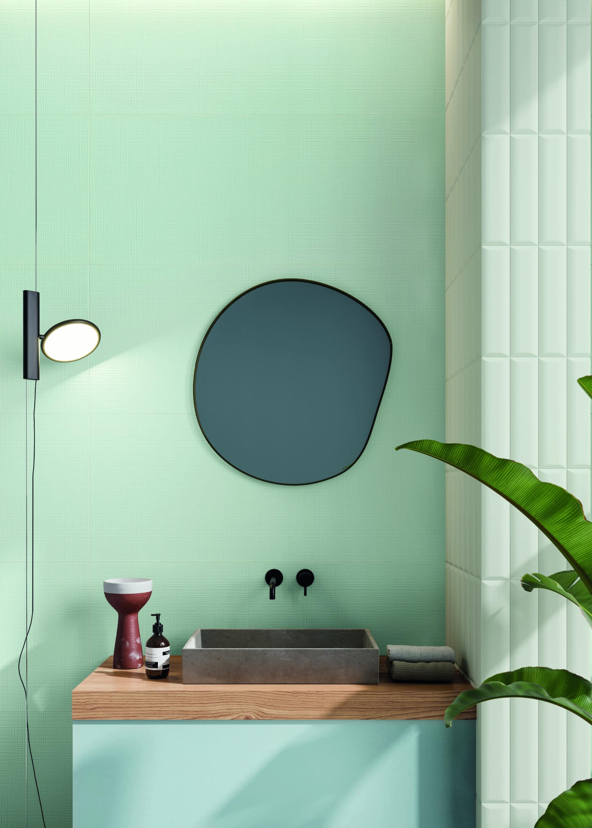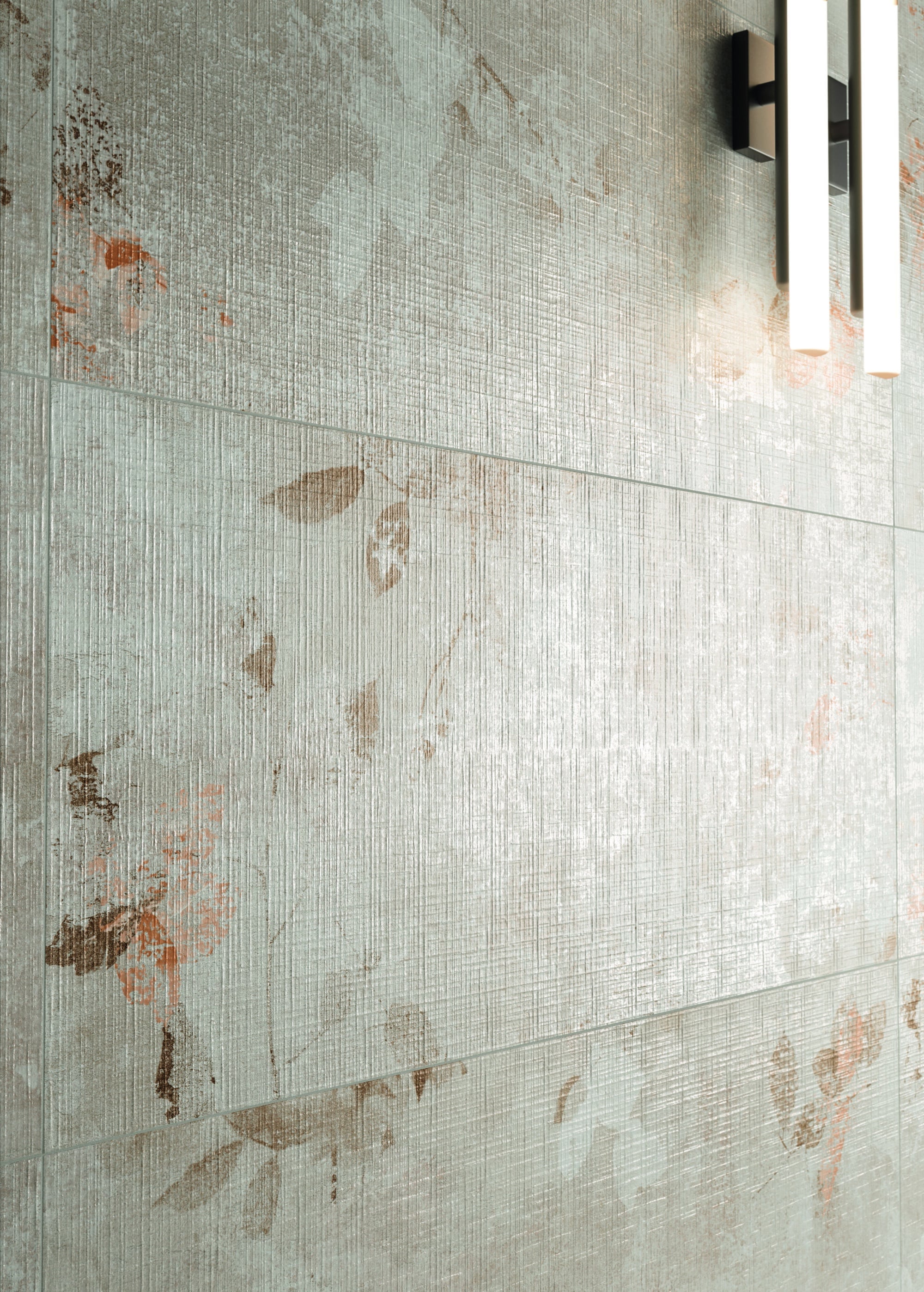 Un léger motif en relief agrémente la surface de la série Lilysuite, proposée dans le format 50×120 cm rectifié, une petite plaque pratique à manipuler et à poser, conçue pour minimiser les joints en faveur d’une continuité visuelle optimale.