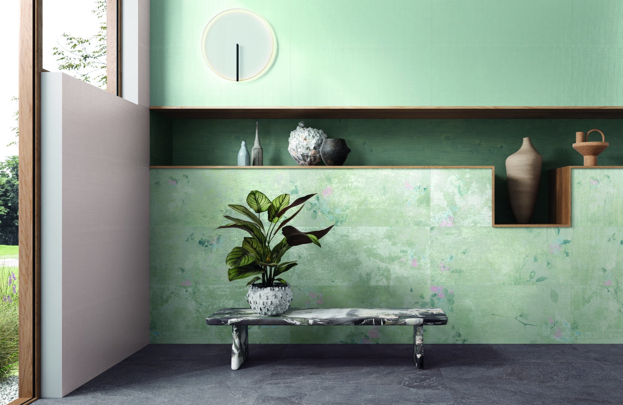 Revêtements en pâte blanche décoratifs, s’inspirant de la nouvelle tendance jardin d’intérieur, de la beauté de la nature et des jardins fleuris.