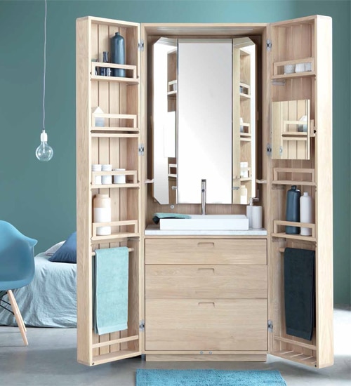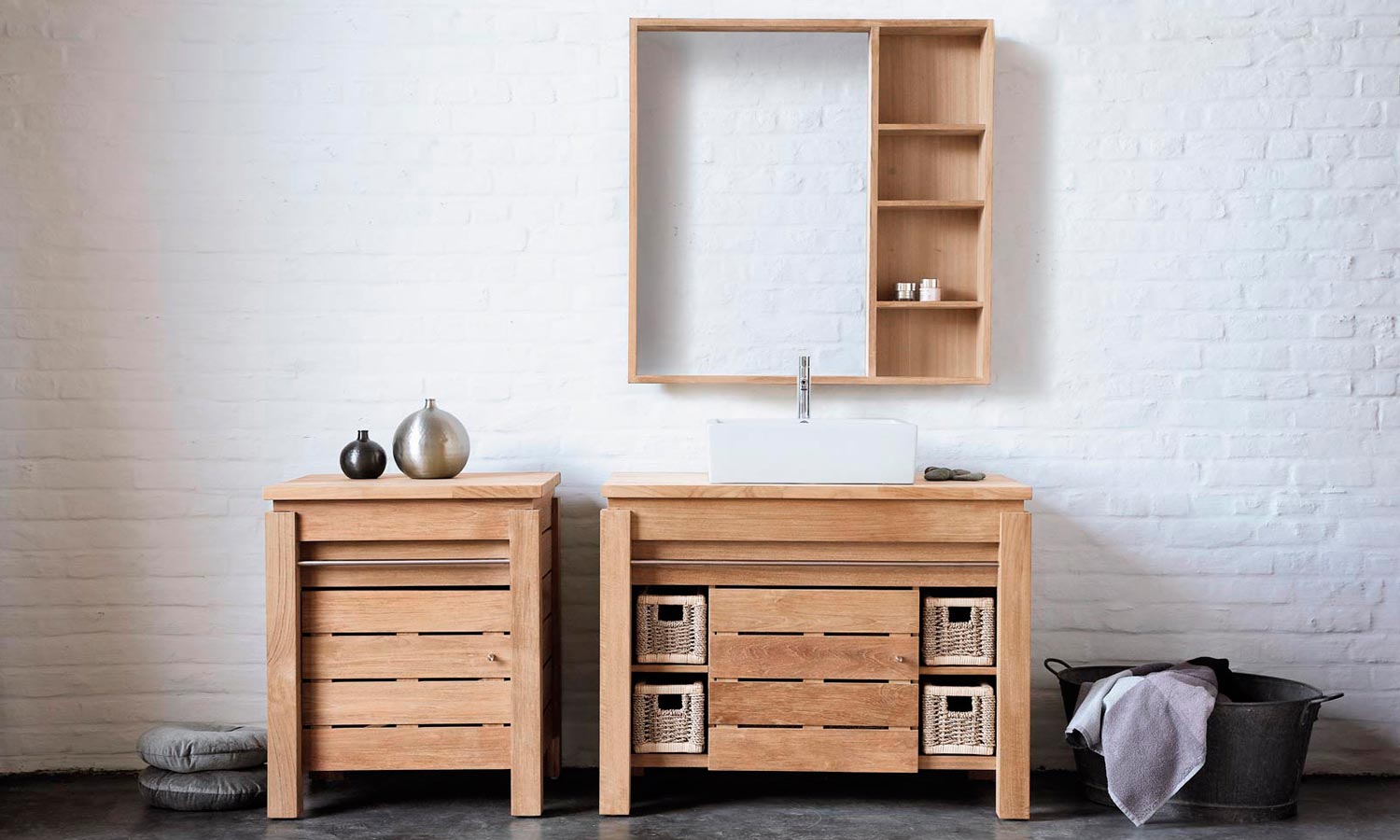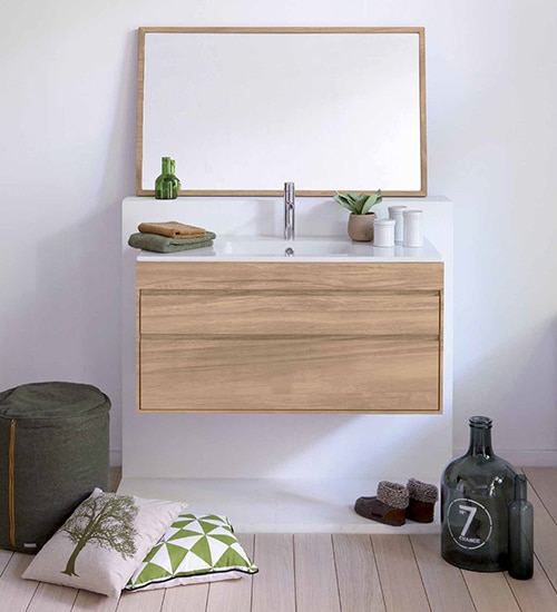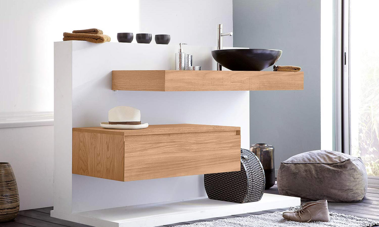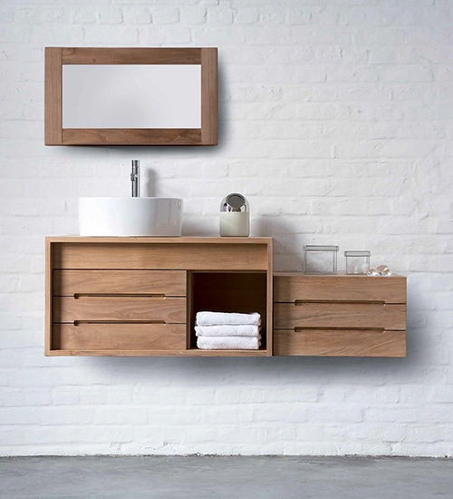 Line est une des plus belles references du mobilier en bois massif dedie a la salle de bains.