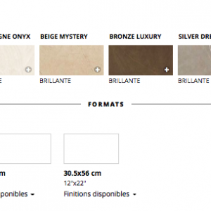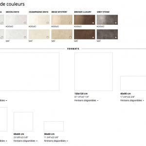 La gamme complète propose des sols et murs coordonnés avec un large choix de dimensions.
