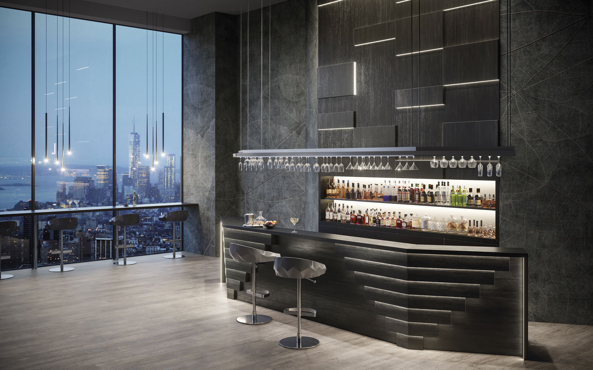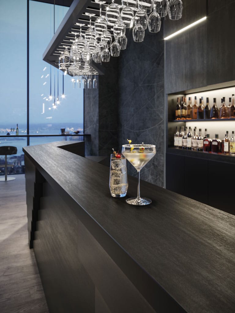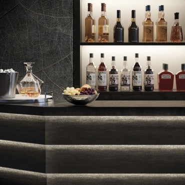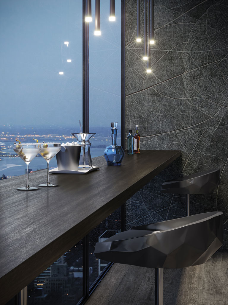 Des suggestions métalliques et des effets de couleur changeants dans les nuances de noir pour des espaces extrêmement élégants et raffinés. La composante métallique de la dalle Mek Dark permet de le juxtaposer à d’autres matériaux et aspects, pour une liberté de composition illimitée.