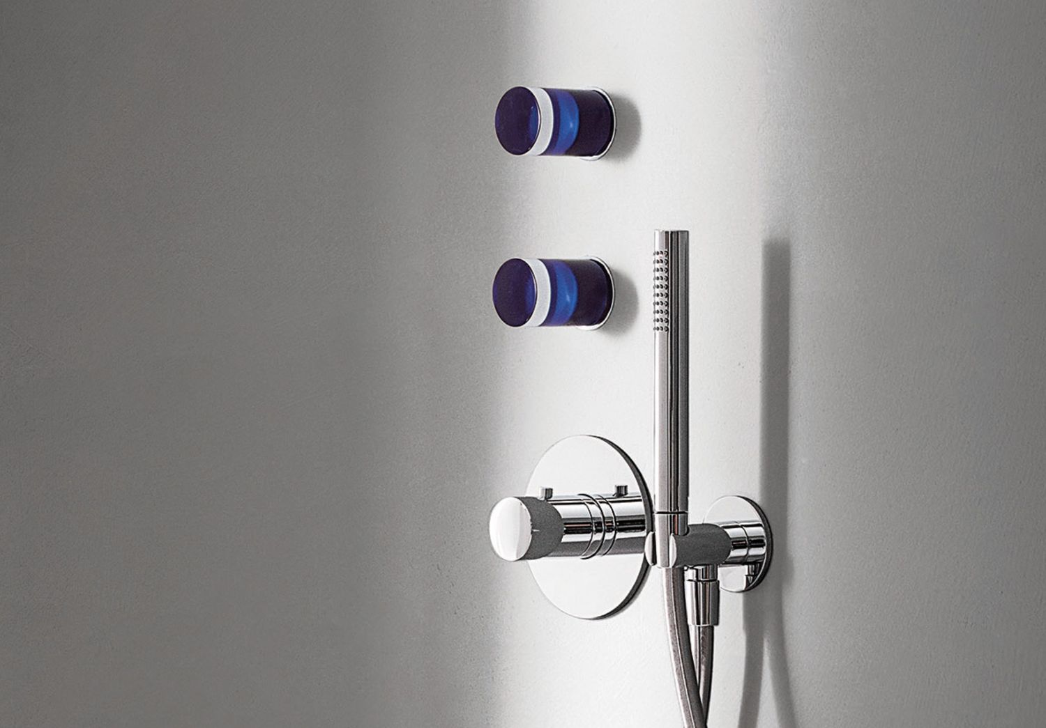 Le mélangeur et les manettes de la collection Nice se caractérisent par une palette de couleurs qui jointes à des éléments translucides créent de surprenants effets optiques et une agréable sensation au toucher.