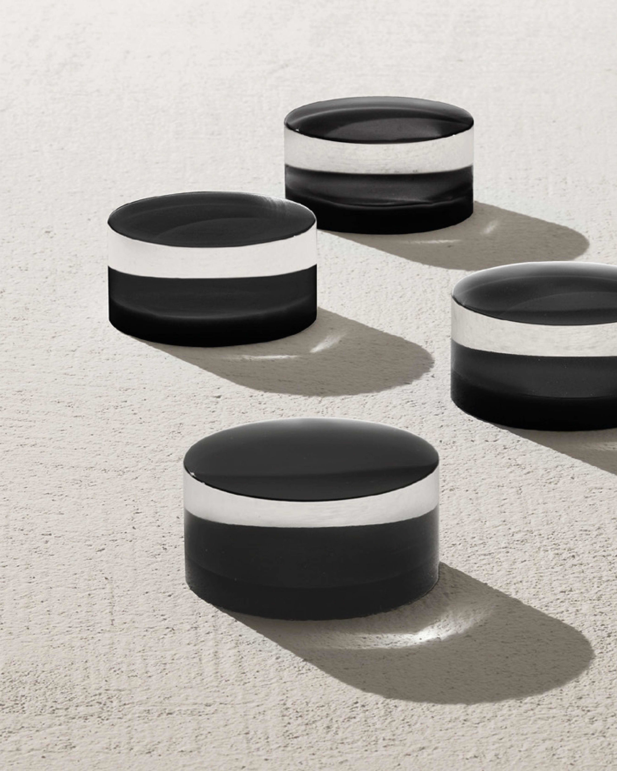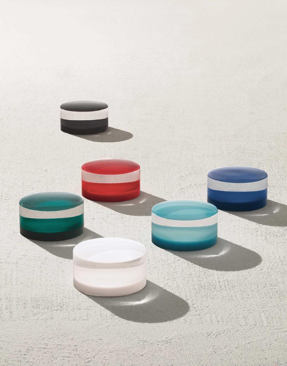 Nice est le fruit d’une recherche et d’une expérimentation menée par l’entreprise aux côtés des deux auteurs sur les effets chromatiques combinés à la transparence et à la translucidité, qui permet à la lumière de se diffuser au travers de la matière.