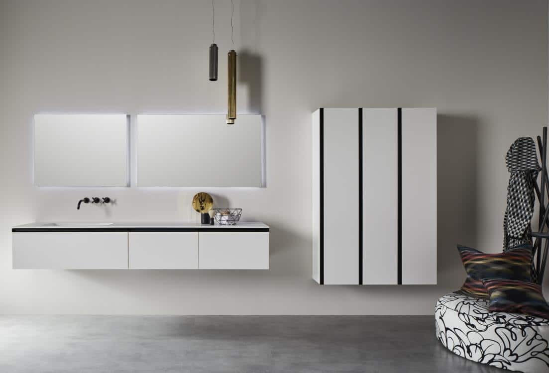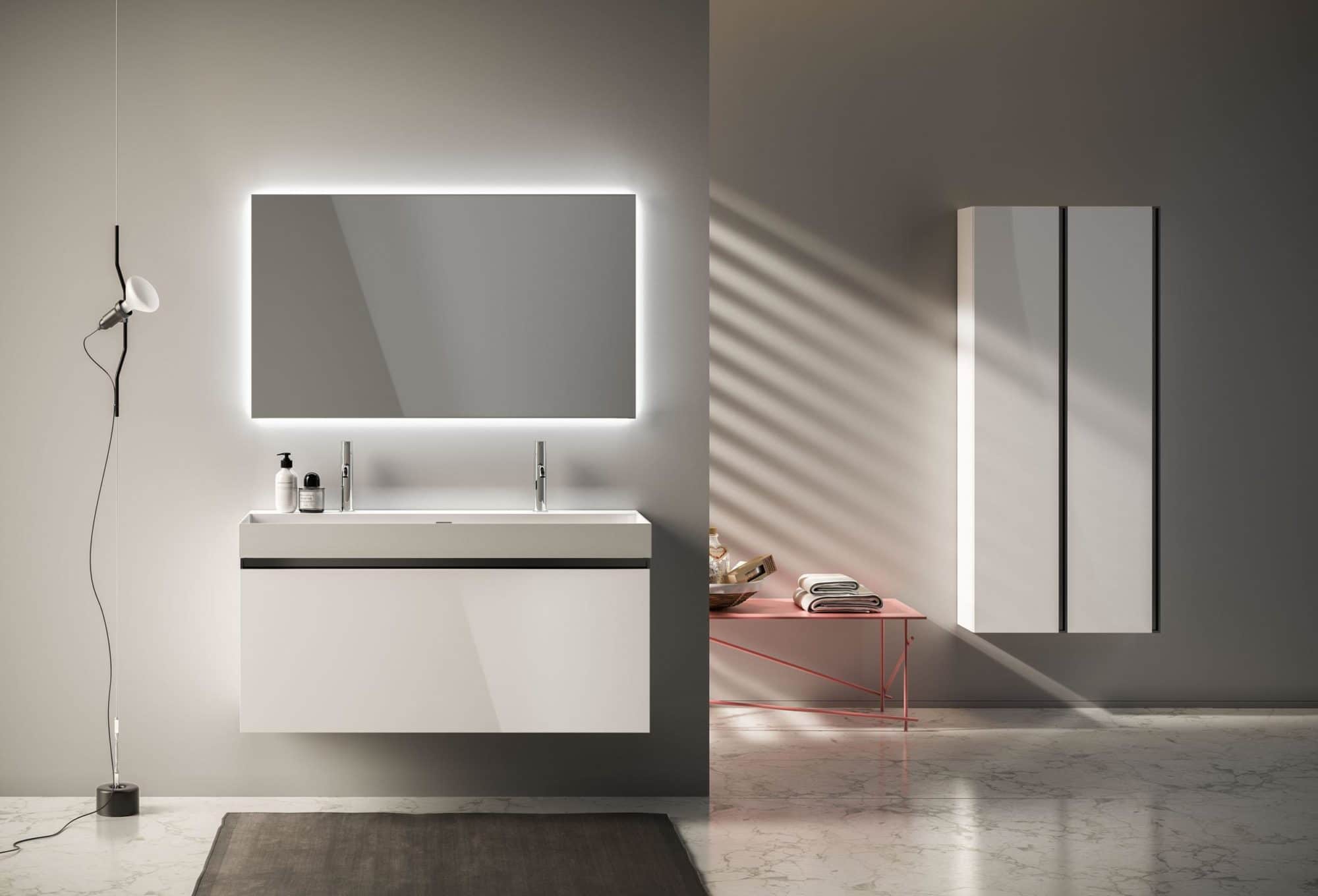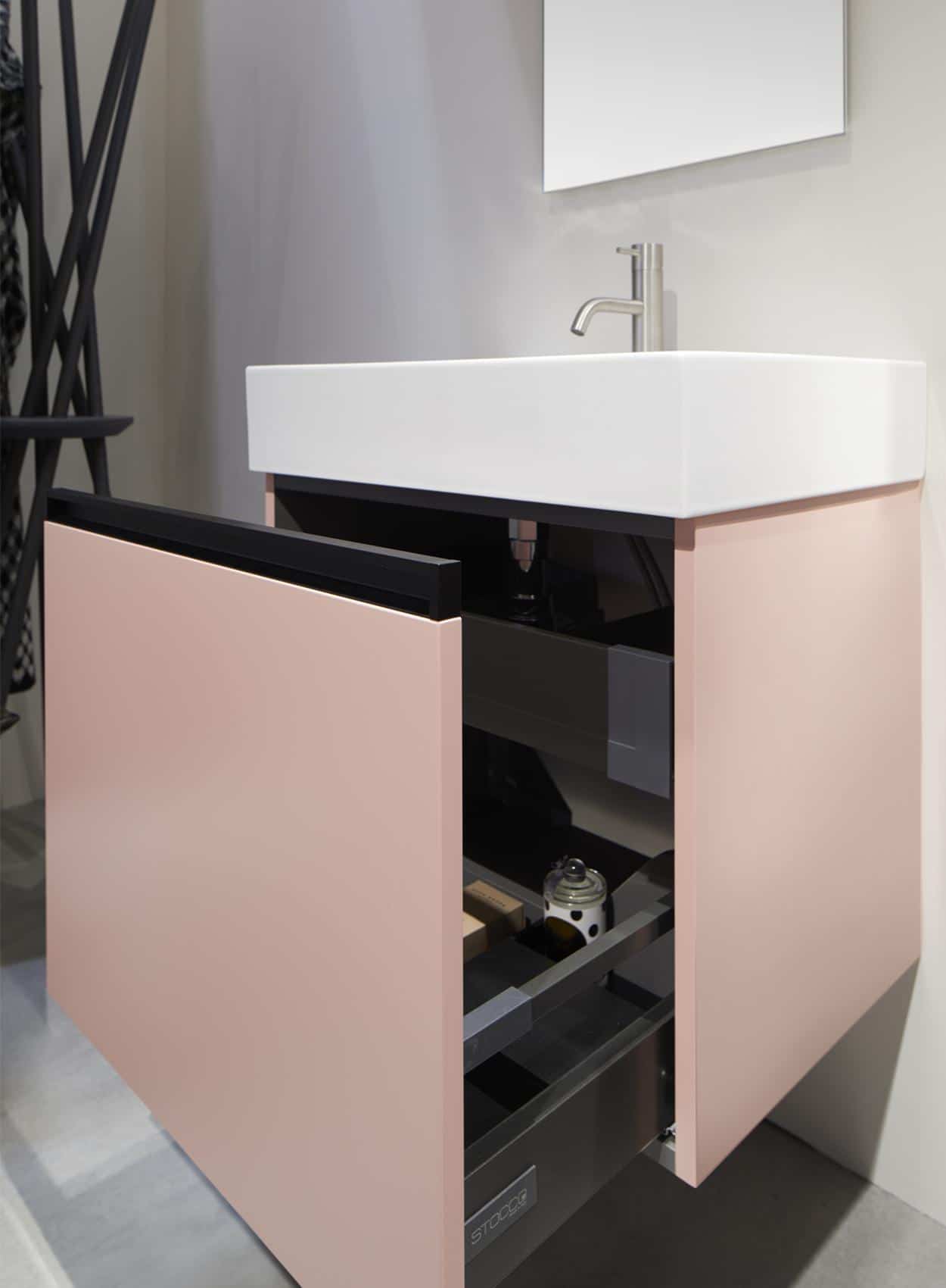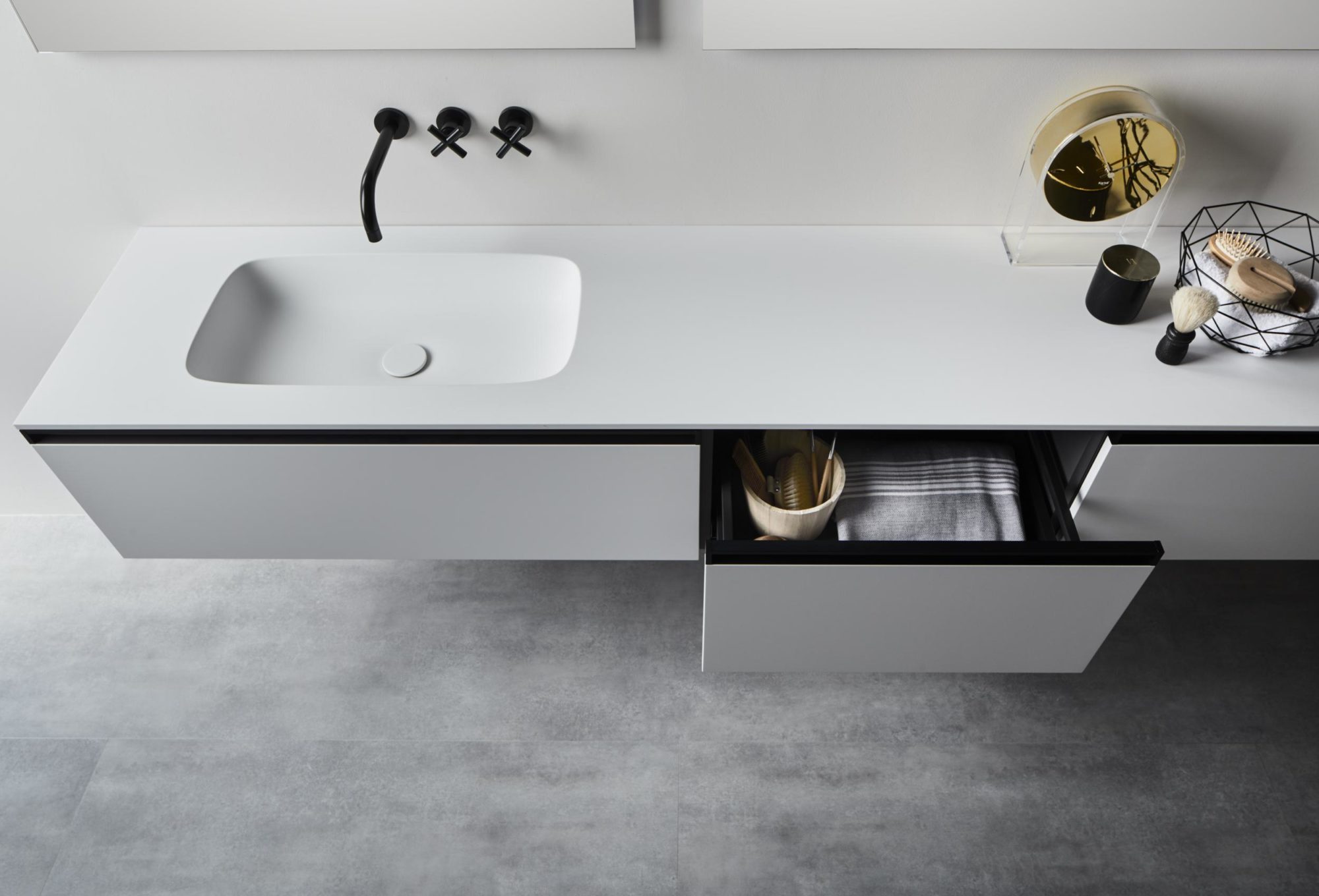 La serie Over46 est un système conçu pour composer des meubles de salle de bains flexibles et fonctionnels. La faible profondeur de 46 cm, convient aux compositions agiles, toujours caractérisées par une ligne élégante, et parfaitement organisées.