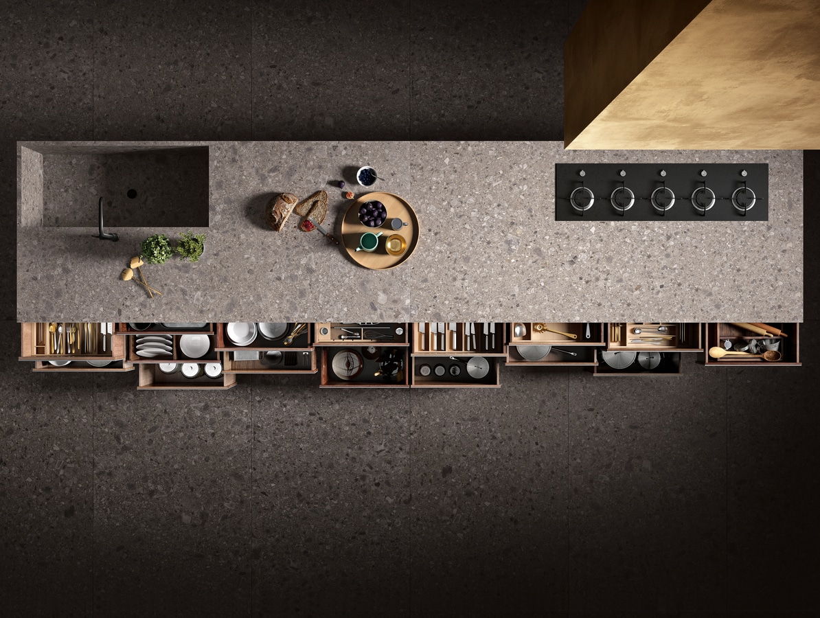 La collection Pietra d’Iseo reprend l’effet de la pierre lombarde : le Ceppo di Gré, avec laquelle ont été construits des palais, et des monuments qui caractérisent l’aspect historique de Milan.