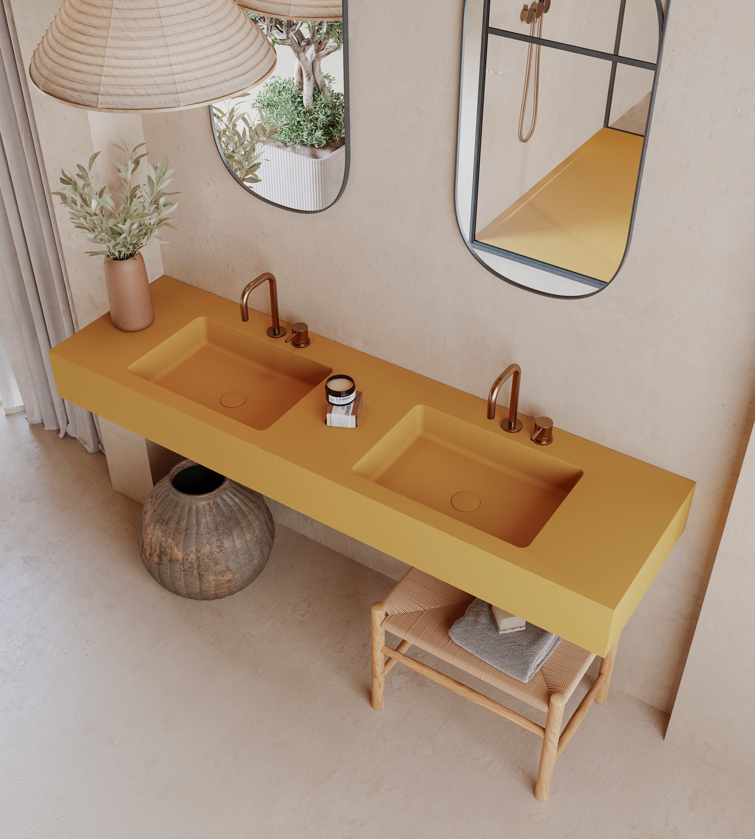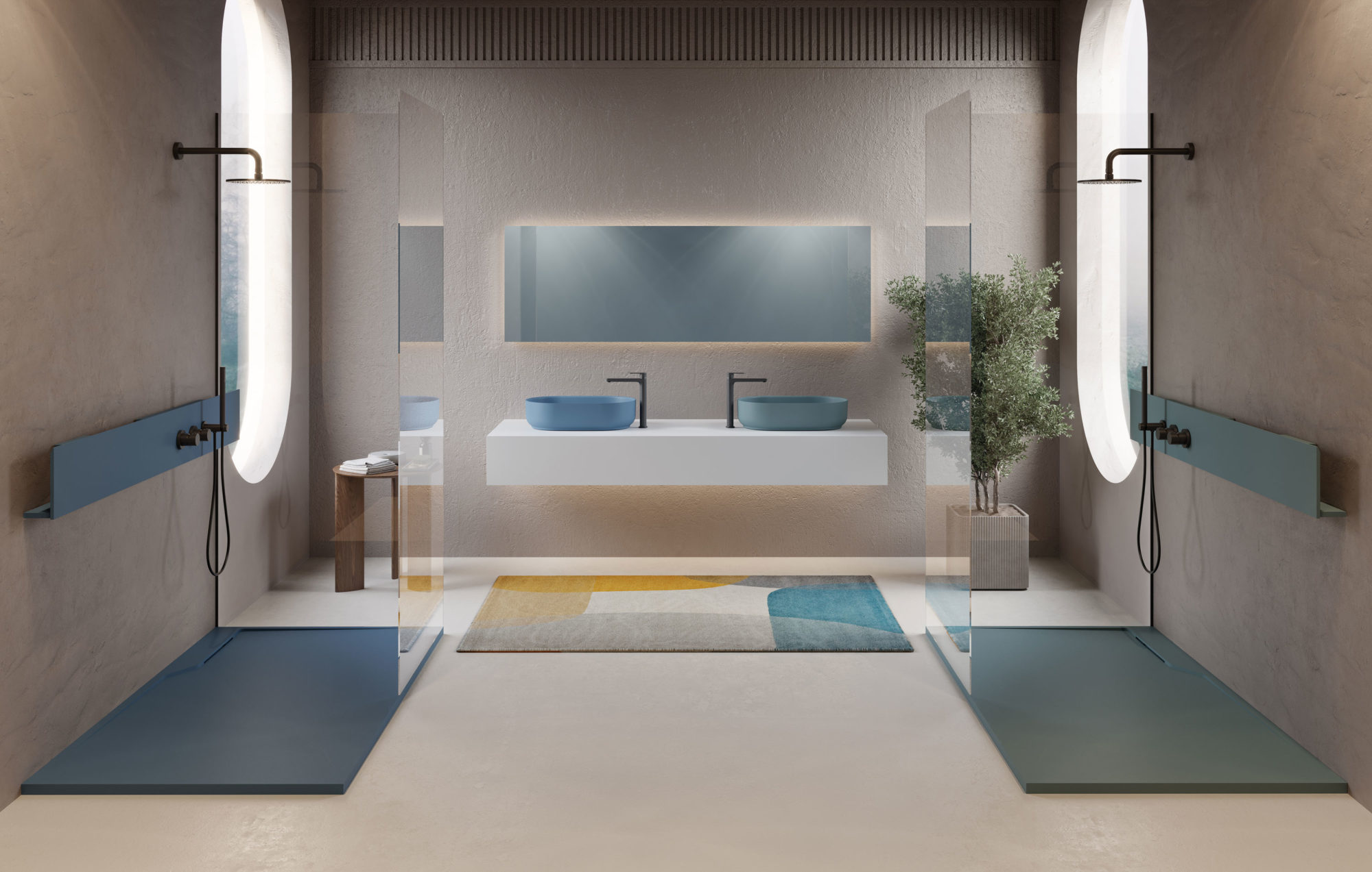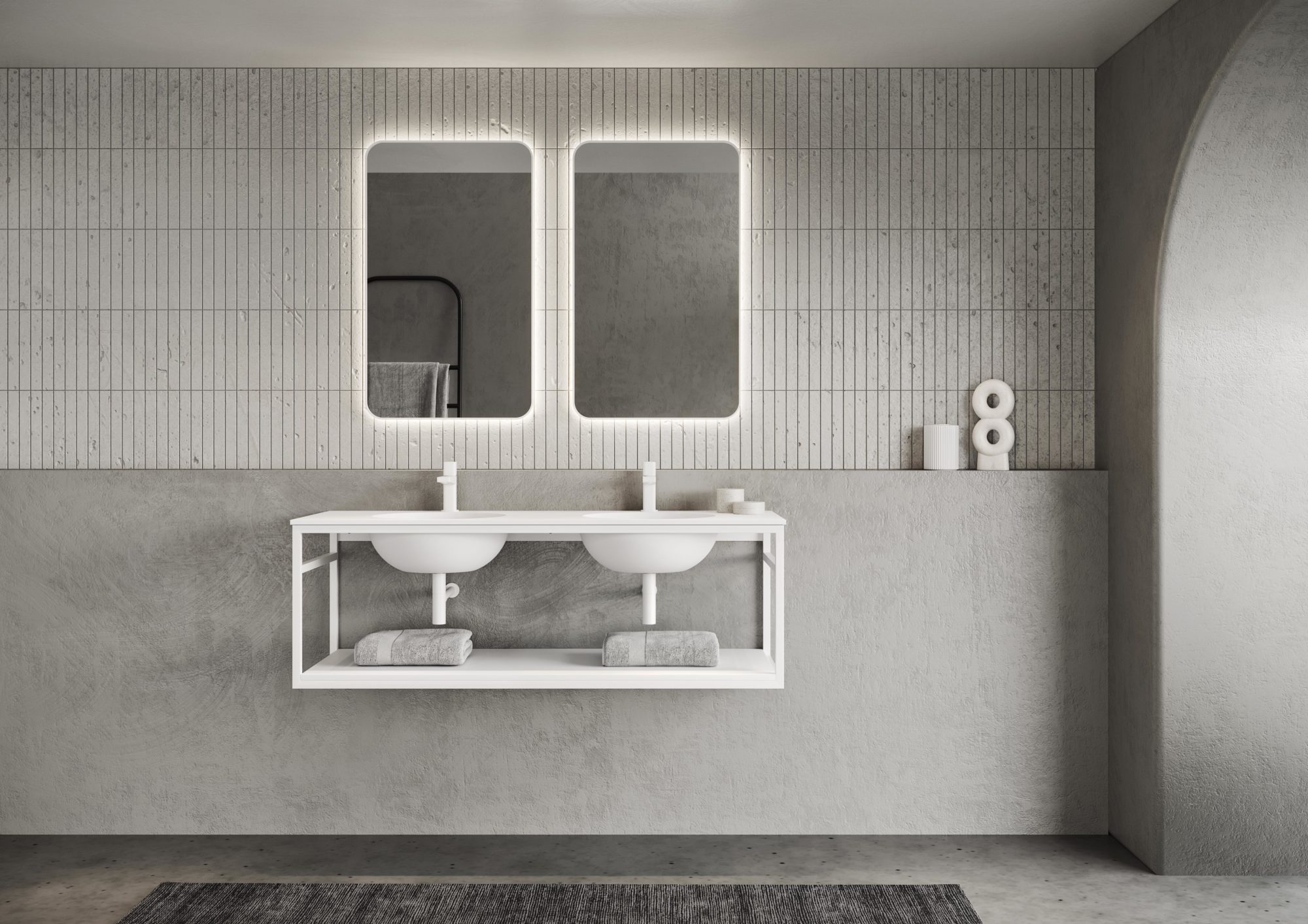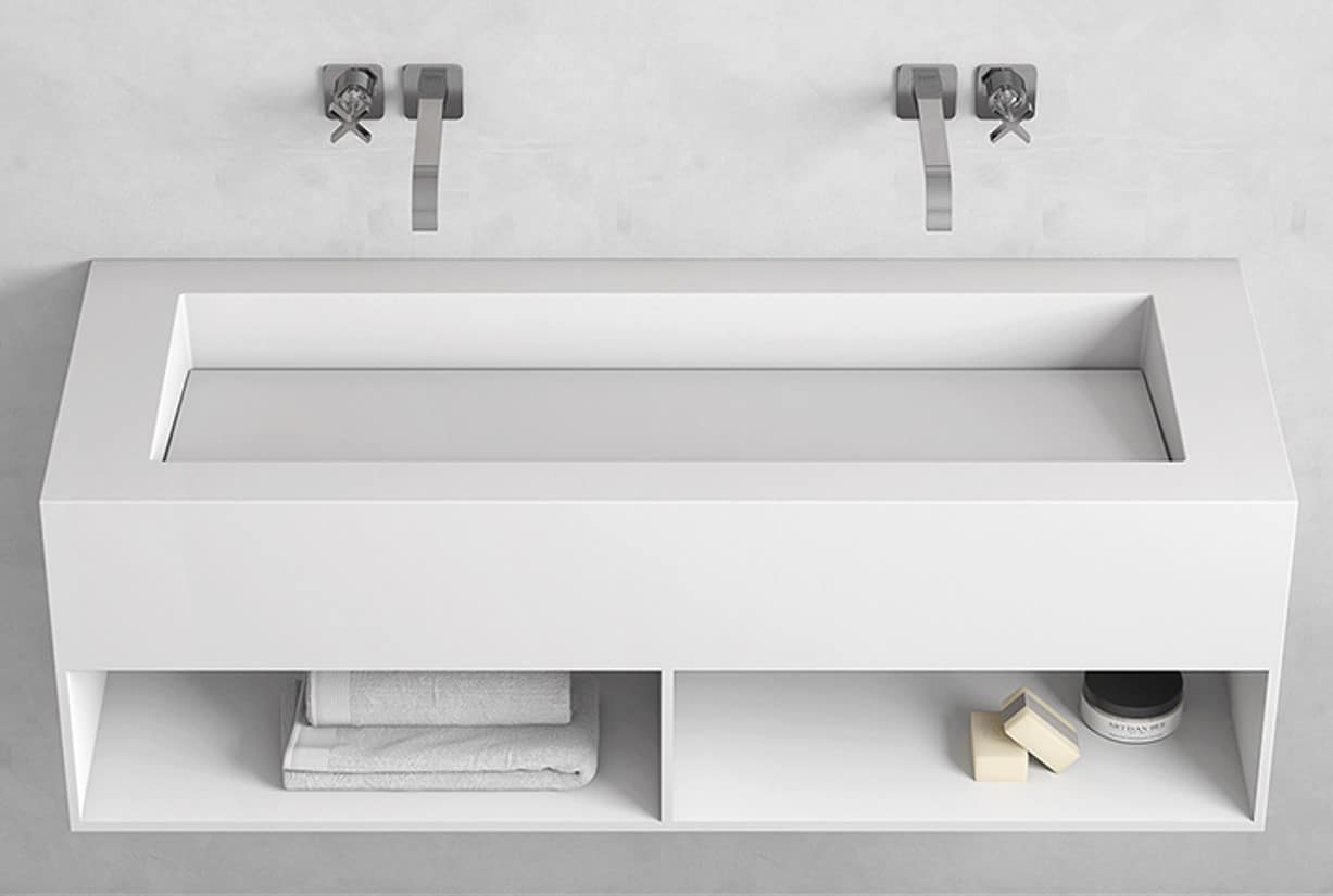 La collection Program a été développée afin d’offrir un grand éventail de possibilités pour designer votre plan vasque. Chaque pièce se prépare et se développe de façon individuelle, en partant choisissant largueur et longueur,il y a le choix parmi 22 modèles de vasque, son emplacement et les accessoires pour le personnaliser. Les plans vasques Program sont fabriquées en matière Scene® blanc en texture lisse ou ardoise, et finition mat