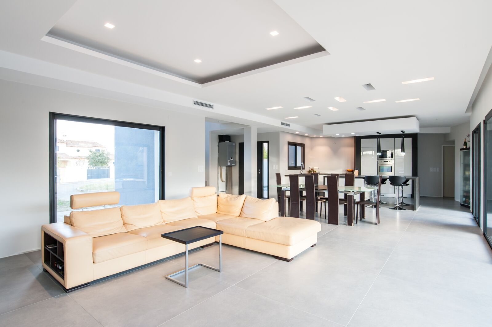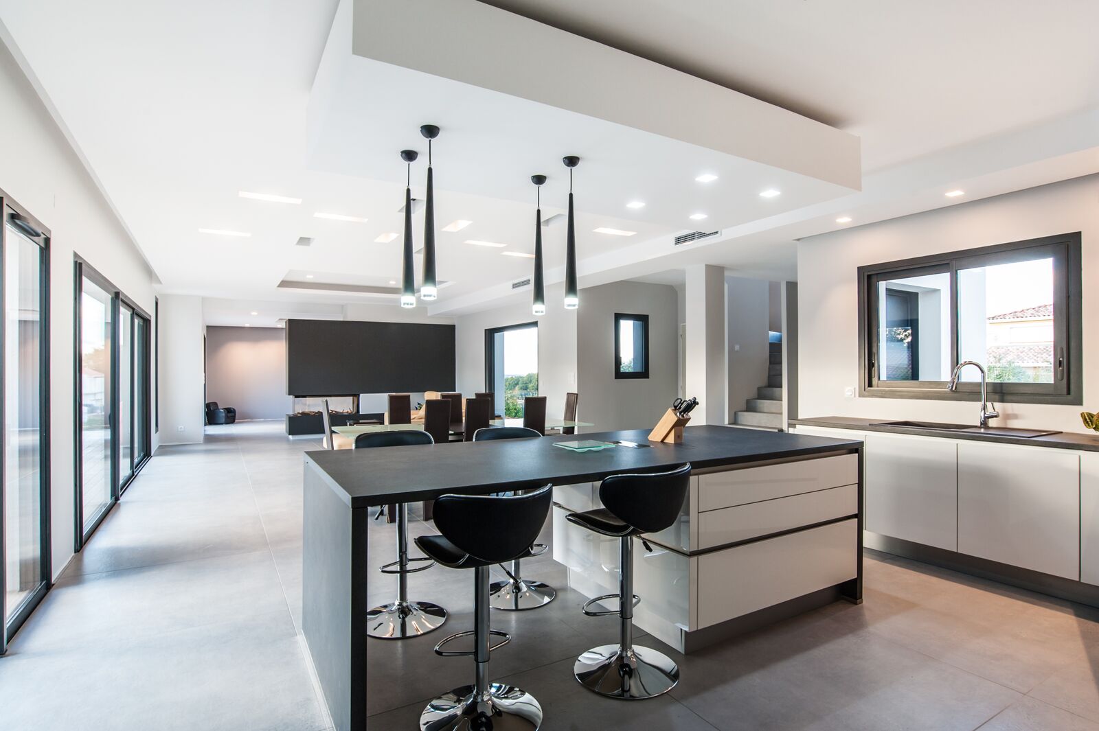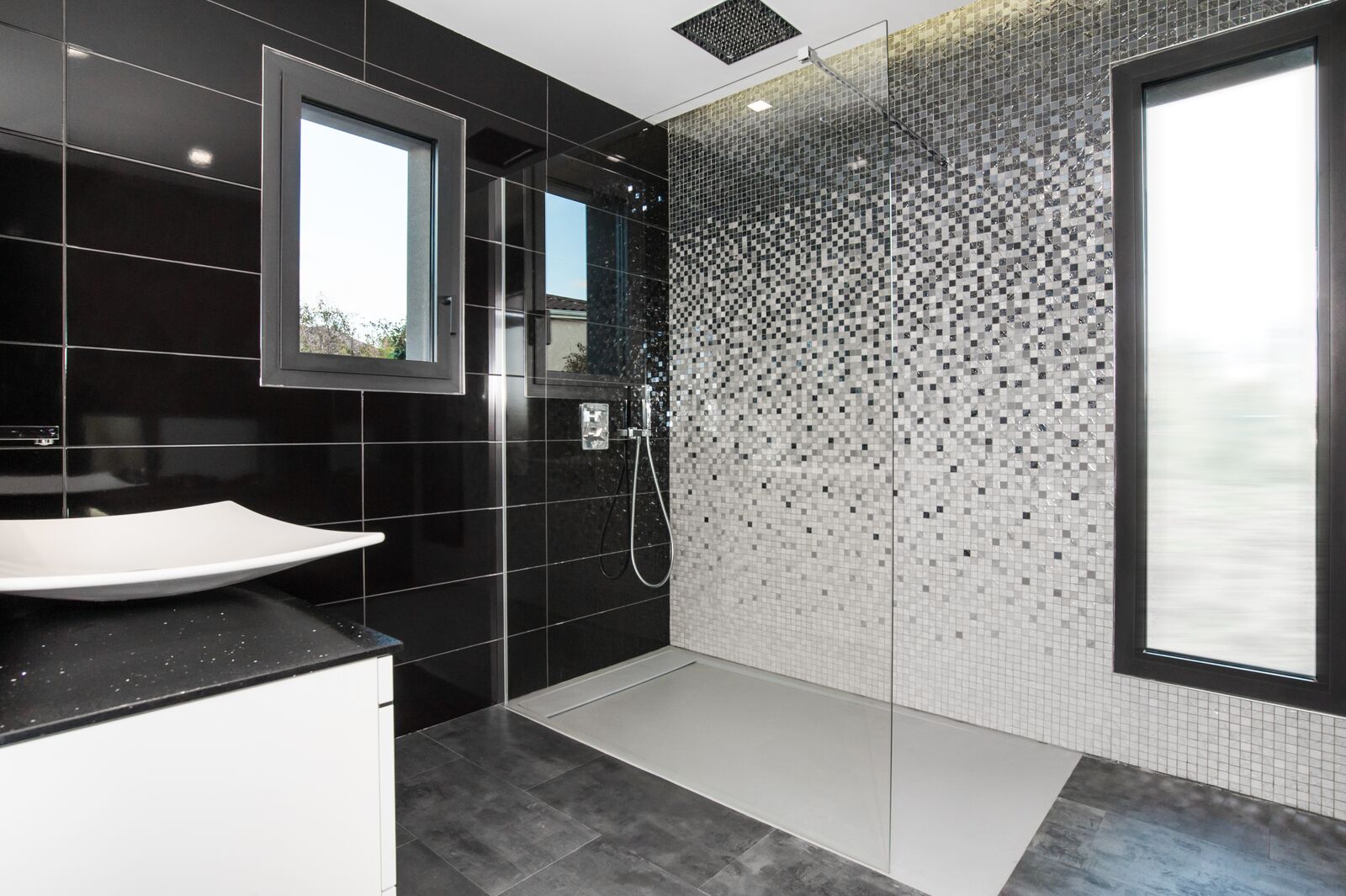Nous vous présentons une maison d’architecte à Balma. – SOL GENERAL : 120×120 – FAIENCE : DEGRADE MOSAIQUE SOL/PLAFOND