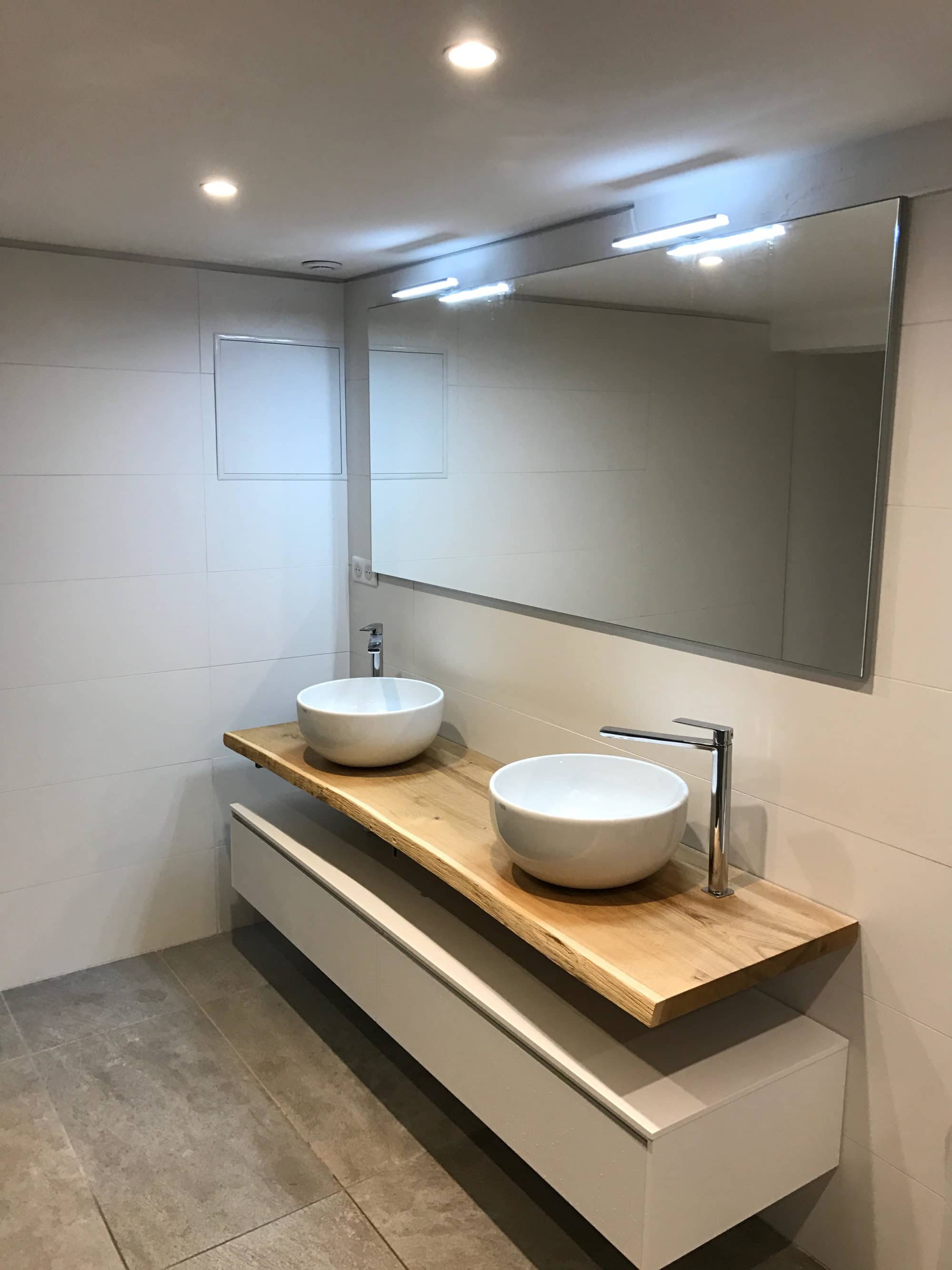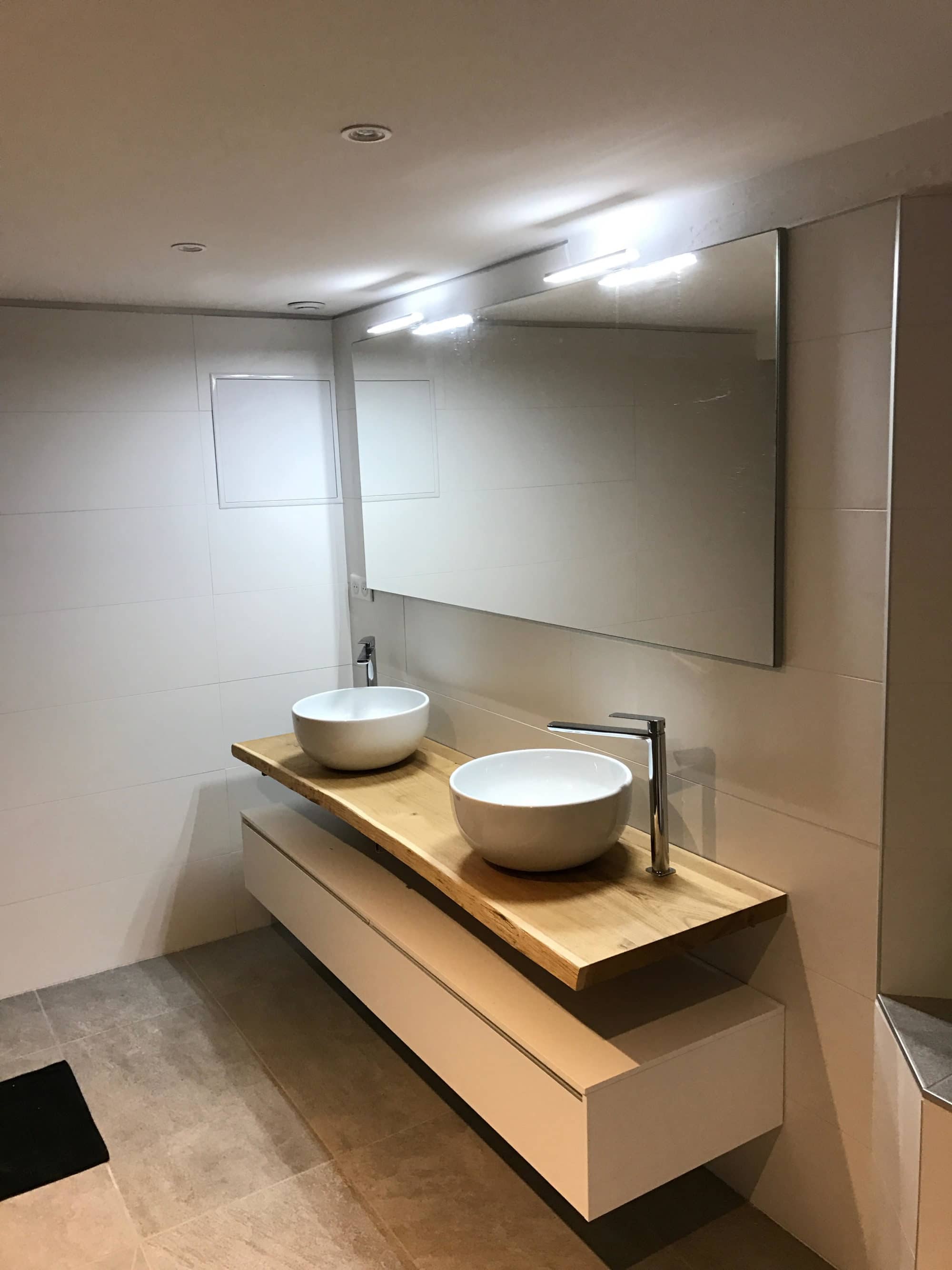 - Plan 200 cm en bois massif + vasques céramique
