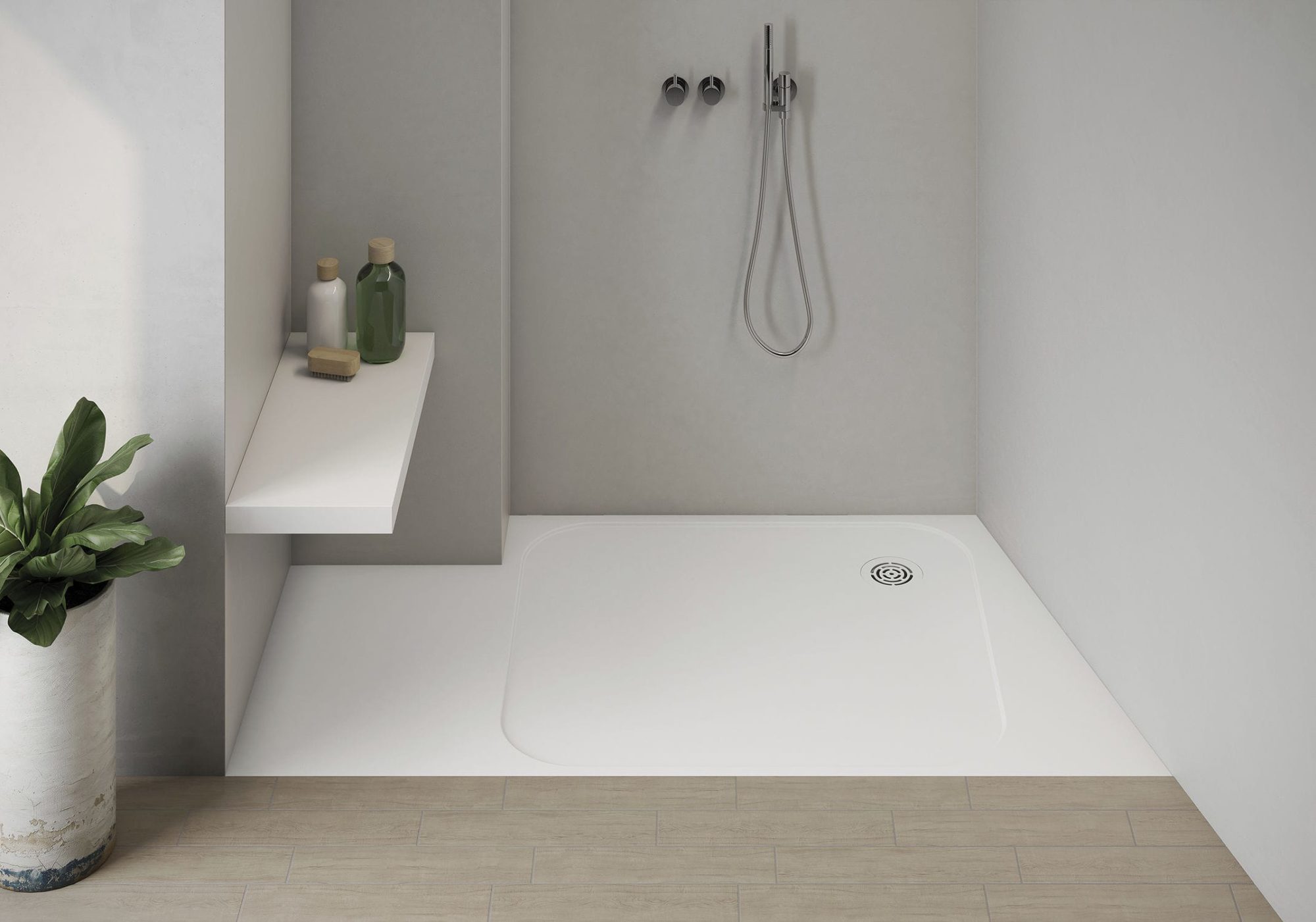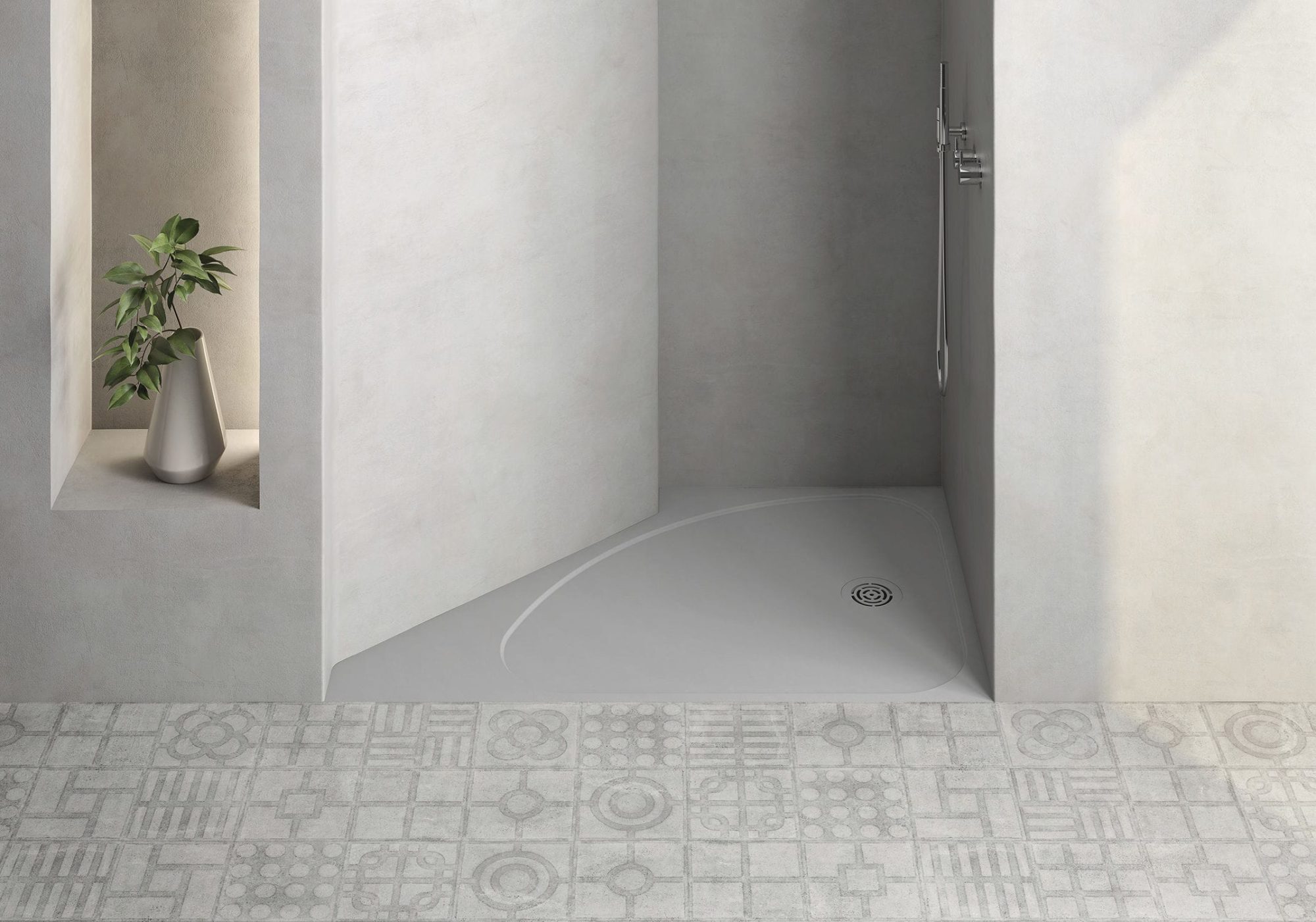 La finition des receveurs est semblable à la pierre naturelle. Sa grille faite du même matériau lui donne un design original (disponible aussi en finition chrome).