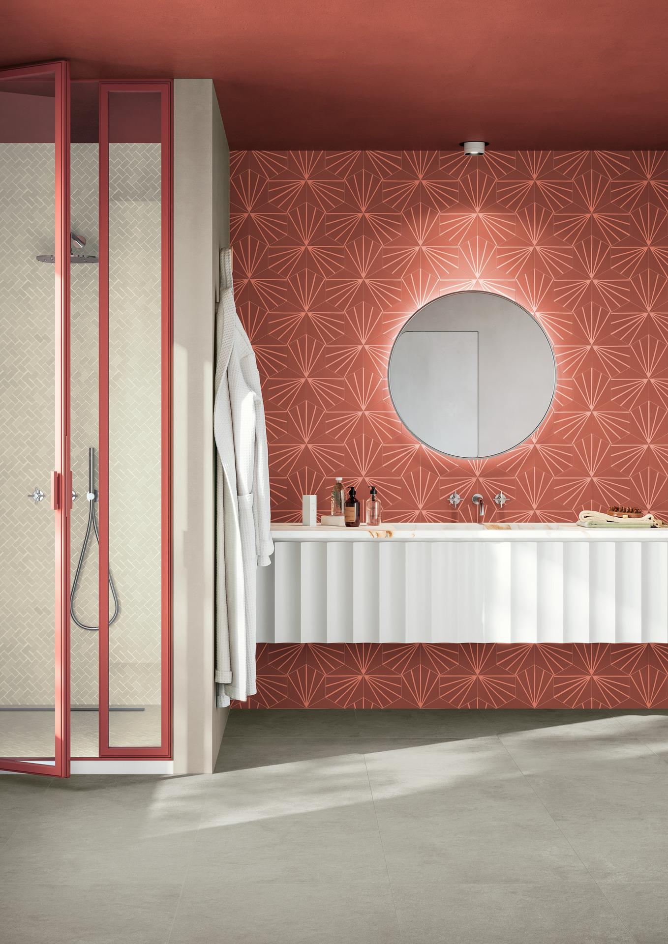 Stratford est une collection complète, faite pour habiller intérieur et extérieur avec une grande polyvalence, disponible aussi en version extérieure XT20 de 2 cm d’épaisseur. Une finition mate offre une antiglissance meilleure grâce à l’exclusive technologie StepWise. Cinq tonalités neutres, dans les formats 120×120, 60×120 cm de 6 mm d’épaisseur et 75×150, 75×75, 60×120, 60×60, 30×60 cm d’épaisseur traditionnelle, s’illuminent avec trois couleurs de tendance, Red, Green et Blu. Cette collection propose une large gamme de décors alterne structures 3D, formes hexagonales et géométries énergiques aux motifs botaniques, pour embellir chaque lieu d’exclusivité.