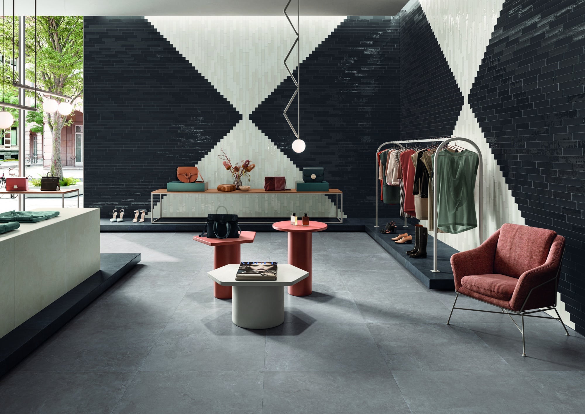 La collection Total Look est un grès cèrame effet résine. L’union de matières variées, mais parfaitement coordonnables, permet la création d’une collection unique : trois résines, un format brick (brillante et matte) et une large gamme de décors.