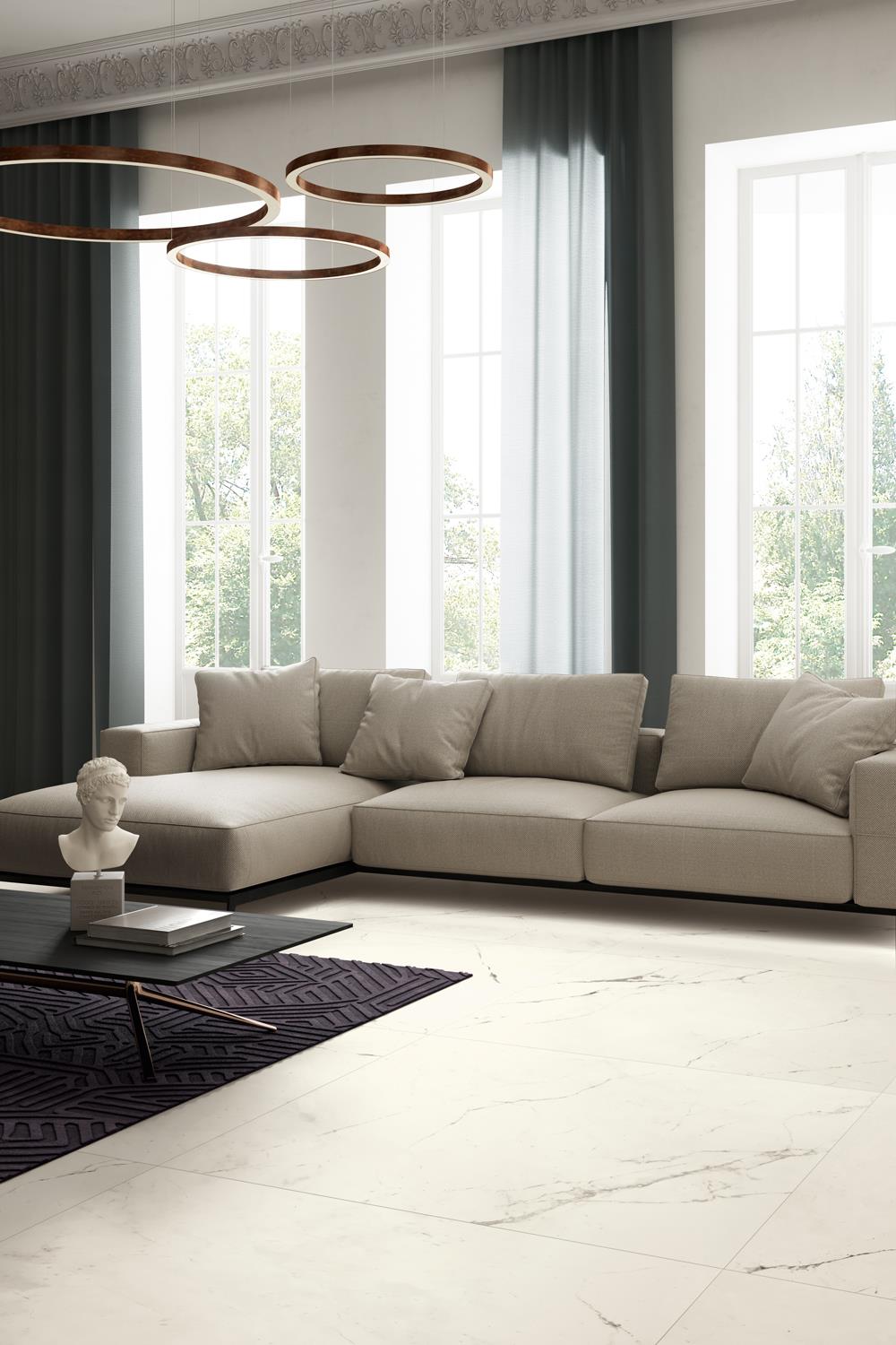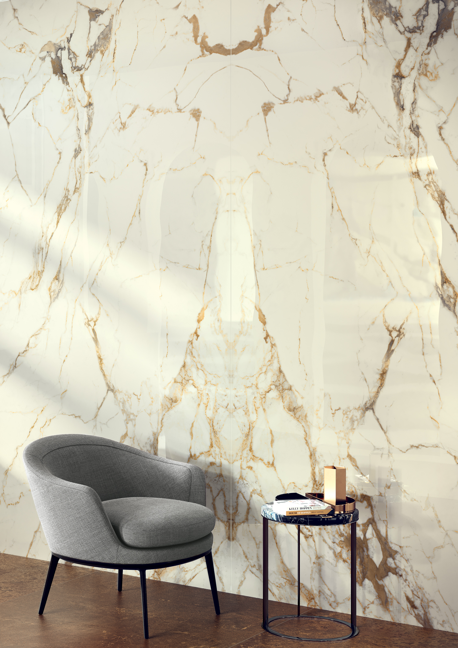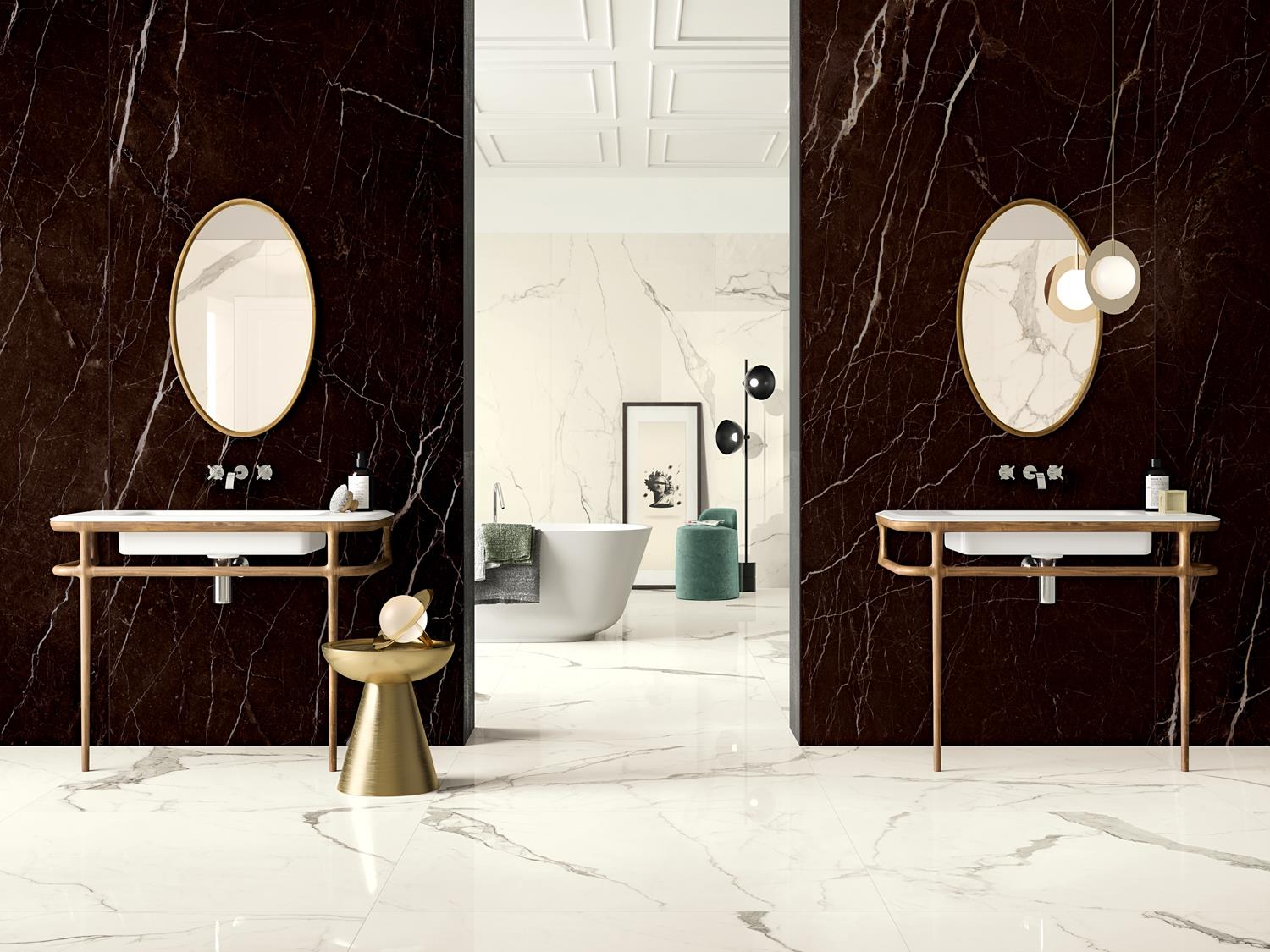 La série VANITY est un grès cérame effet marbre et une surface très pure.