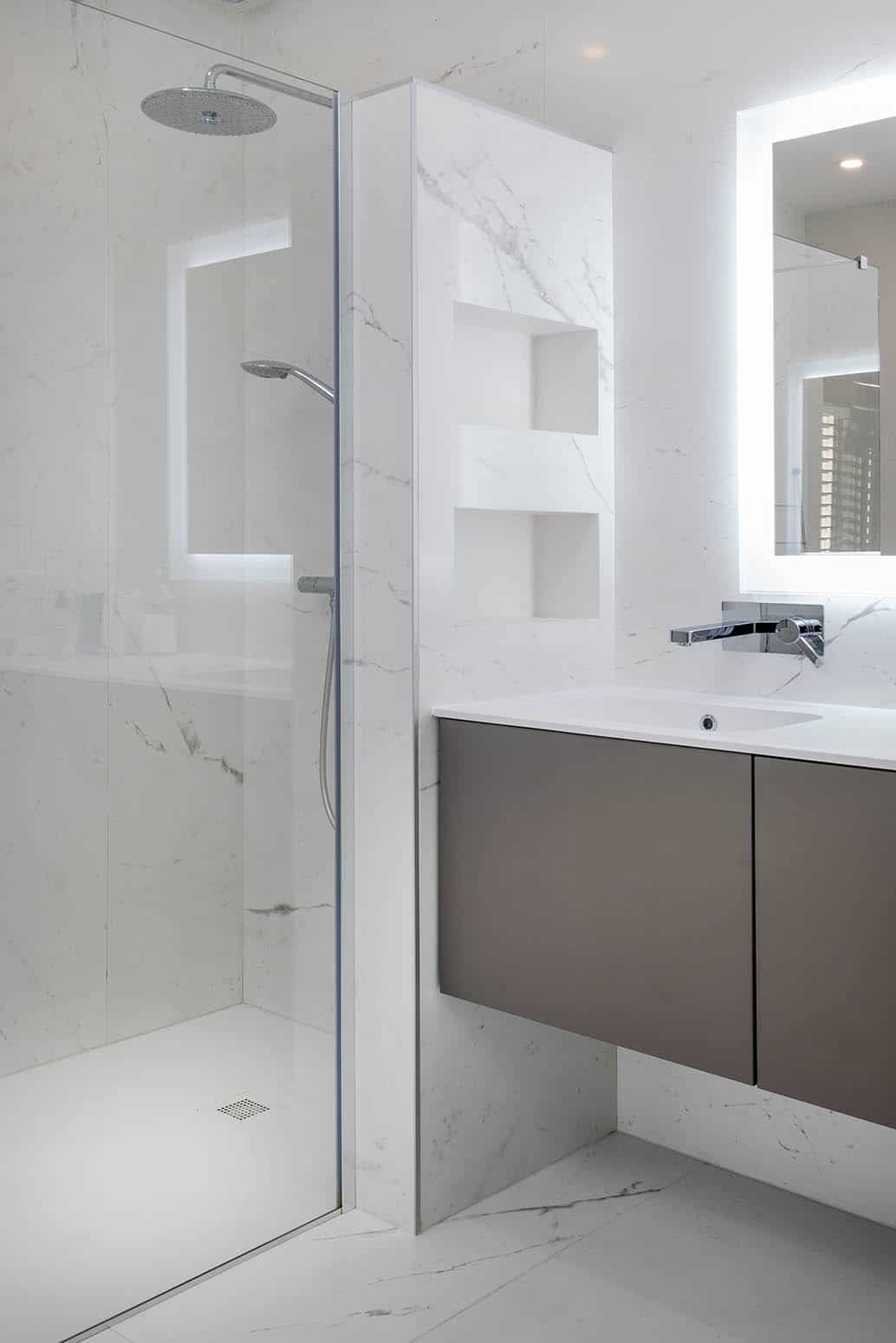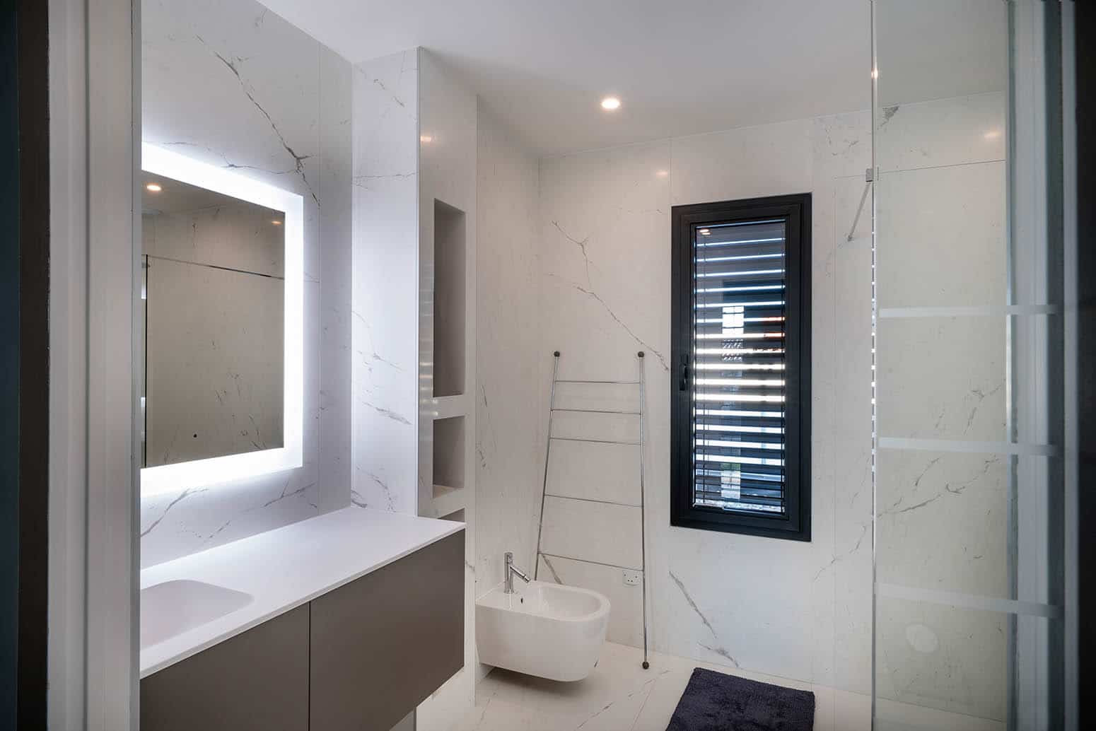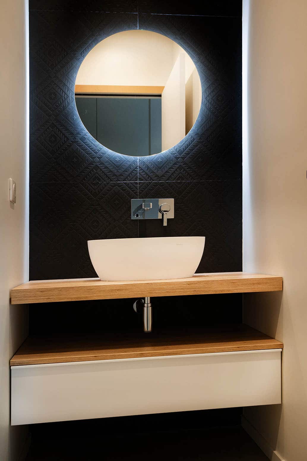 – SANITAIRES : meuble sur mesure OVER51 et miroir LUMINEE